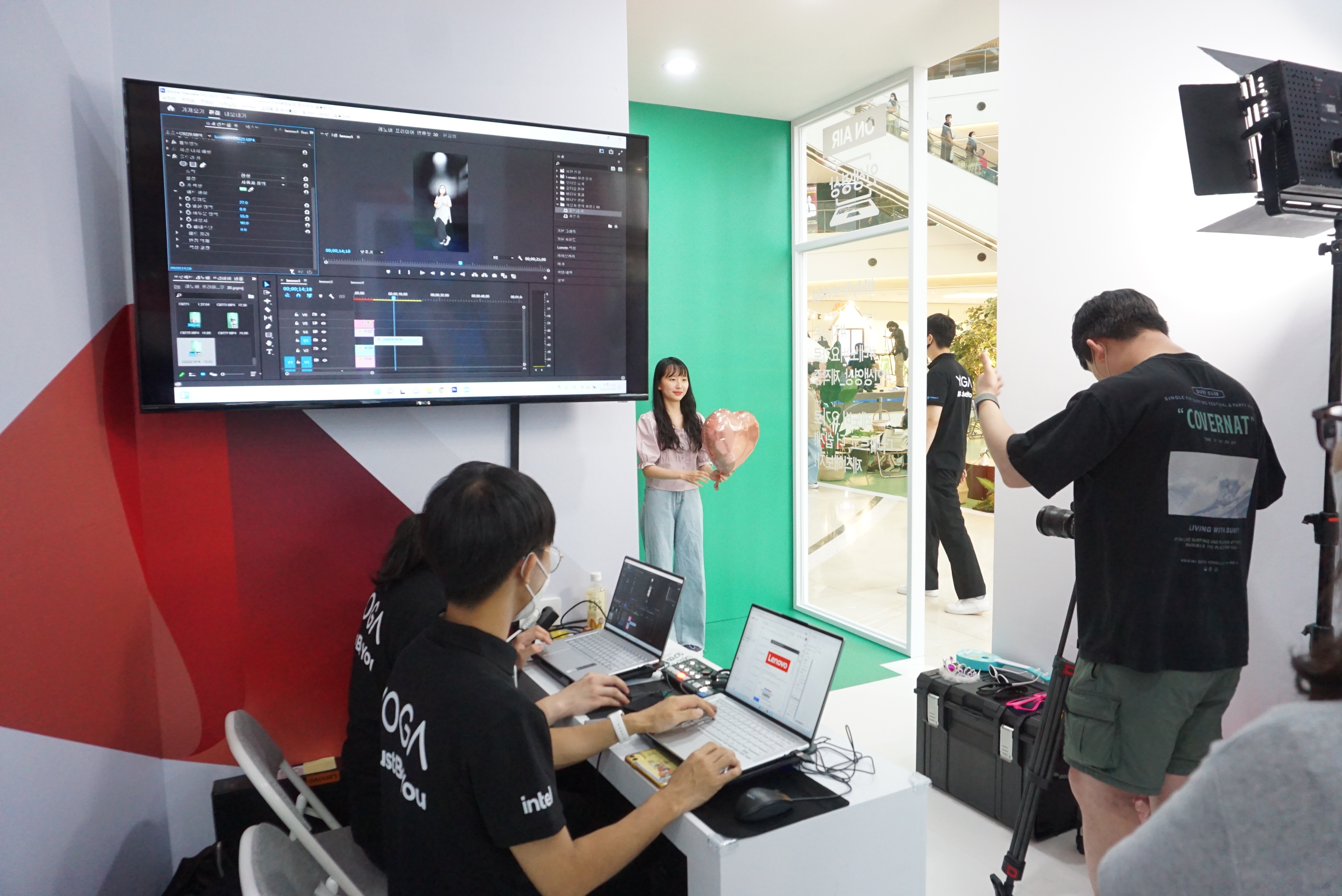 한쪽에서 직원분들이 분주한 이유는 이렇게 고객님들을 상대로 요가 인생영상을 만들어드리고 있었습니다.