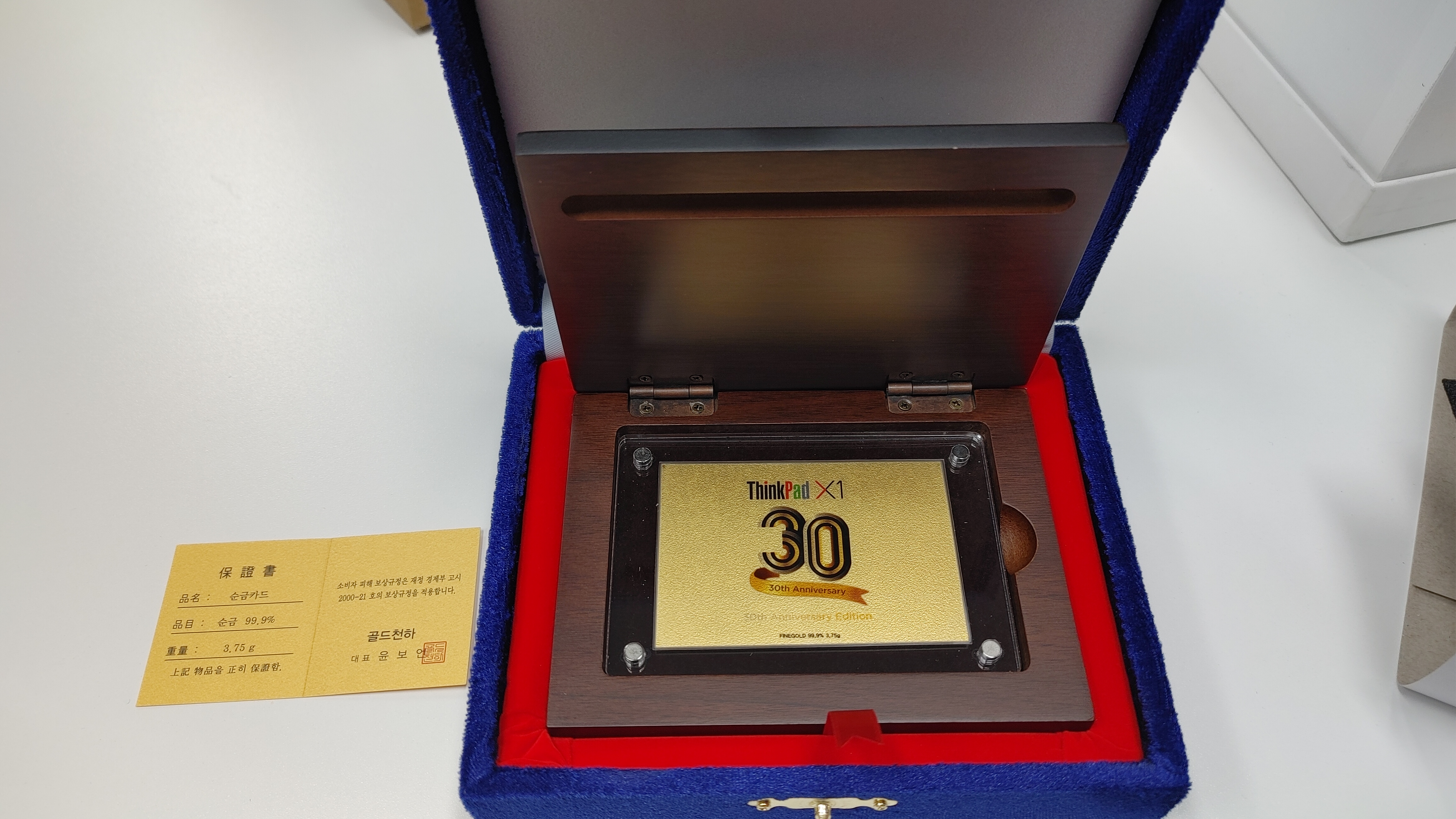 그리고 30주년 특별 사은품 바로 금 1돈 씽크패드 X1 카본 30주년 기념패가 증정됩니다. 순금이에요.