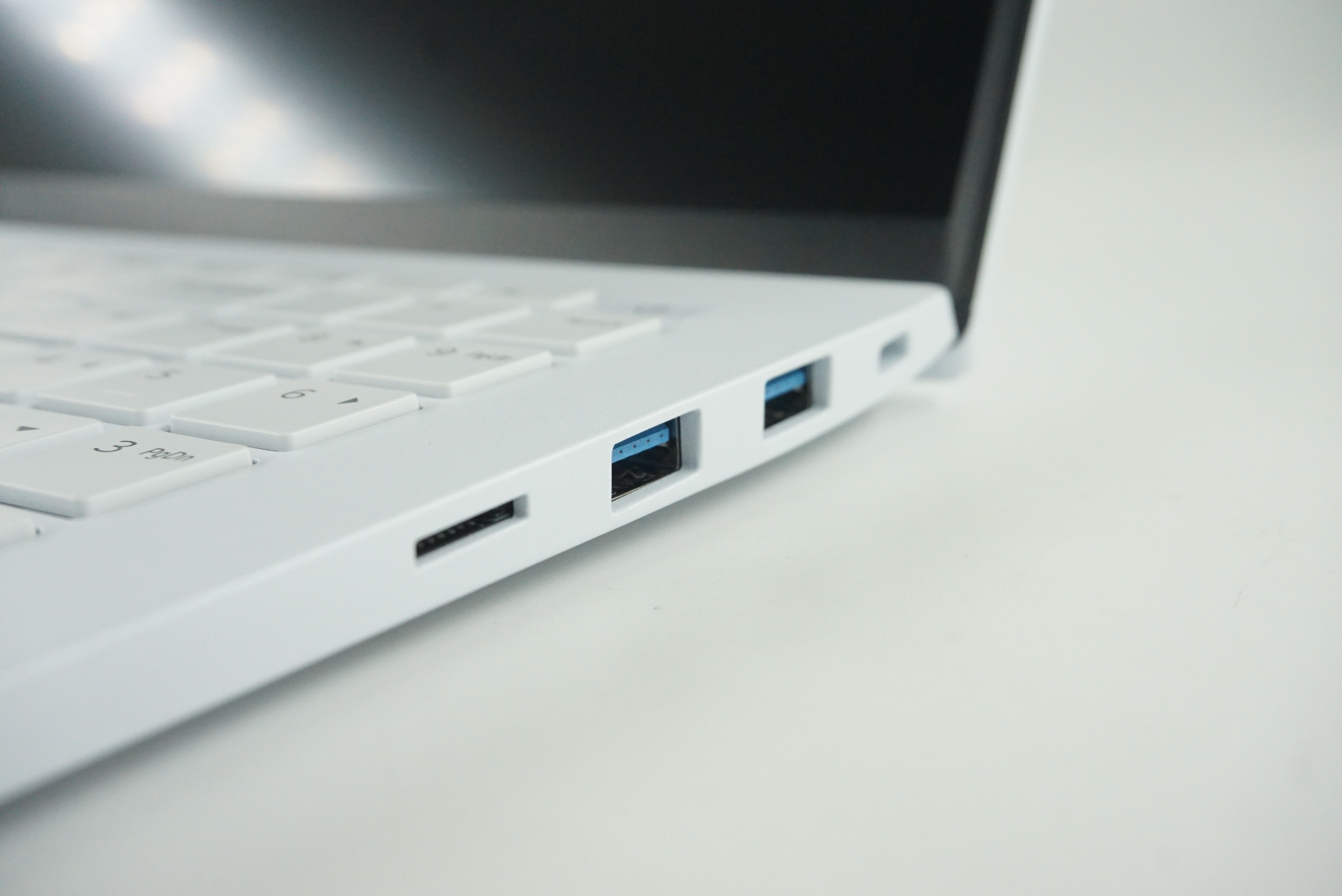 우측에는 USB 3.2 포트 2개와 Micro SD 슬롯 1개가 있습니다. 그리고 캔싱턴 락 포트 1개가 있고요