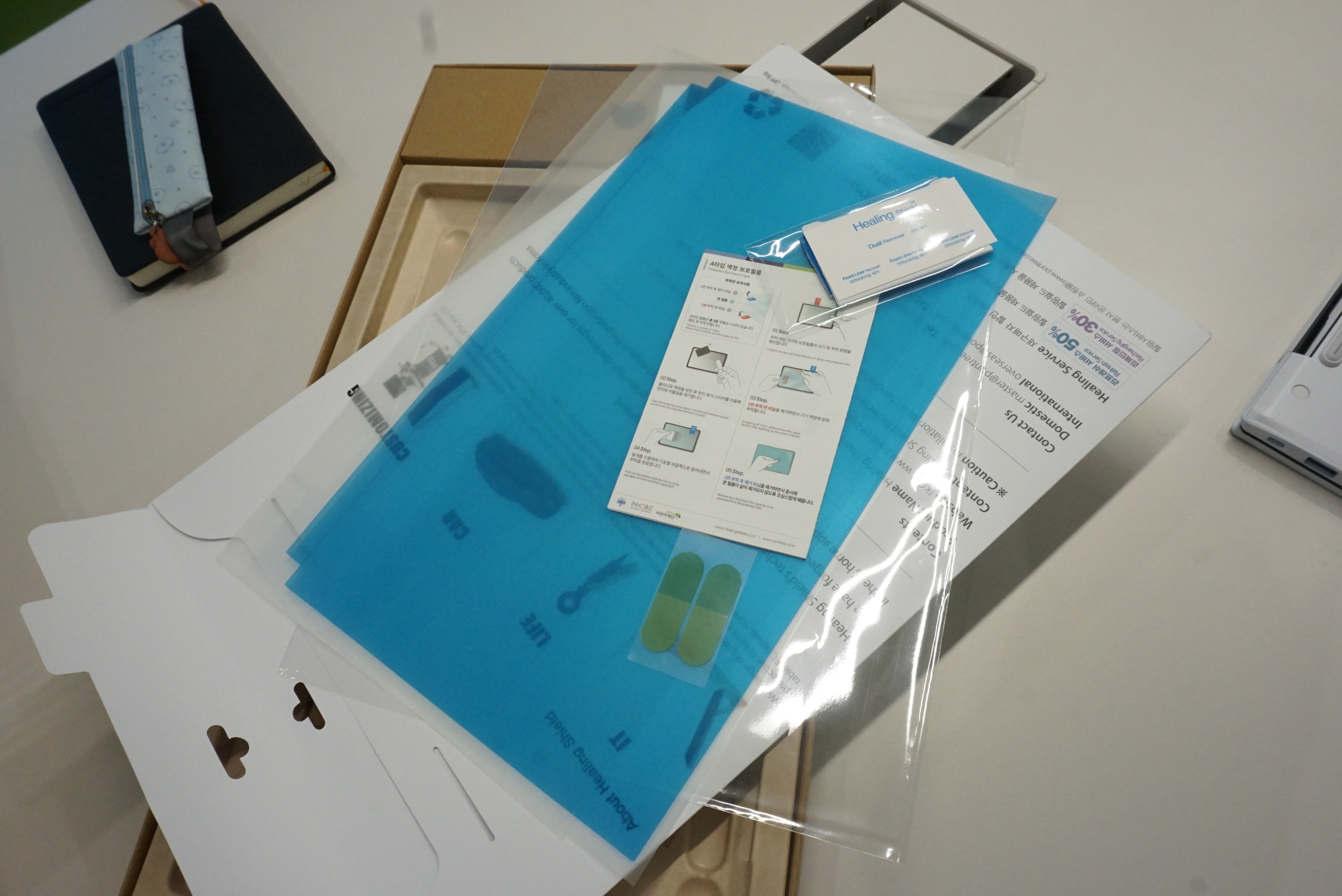 외부부터 붙이고 마지막으로 액정을 붙이면서 보호필름 작업도 마무리 합니다.