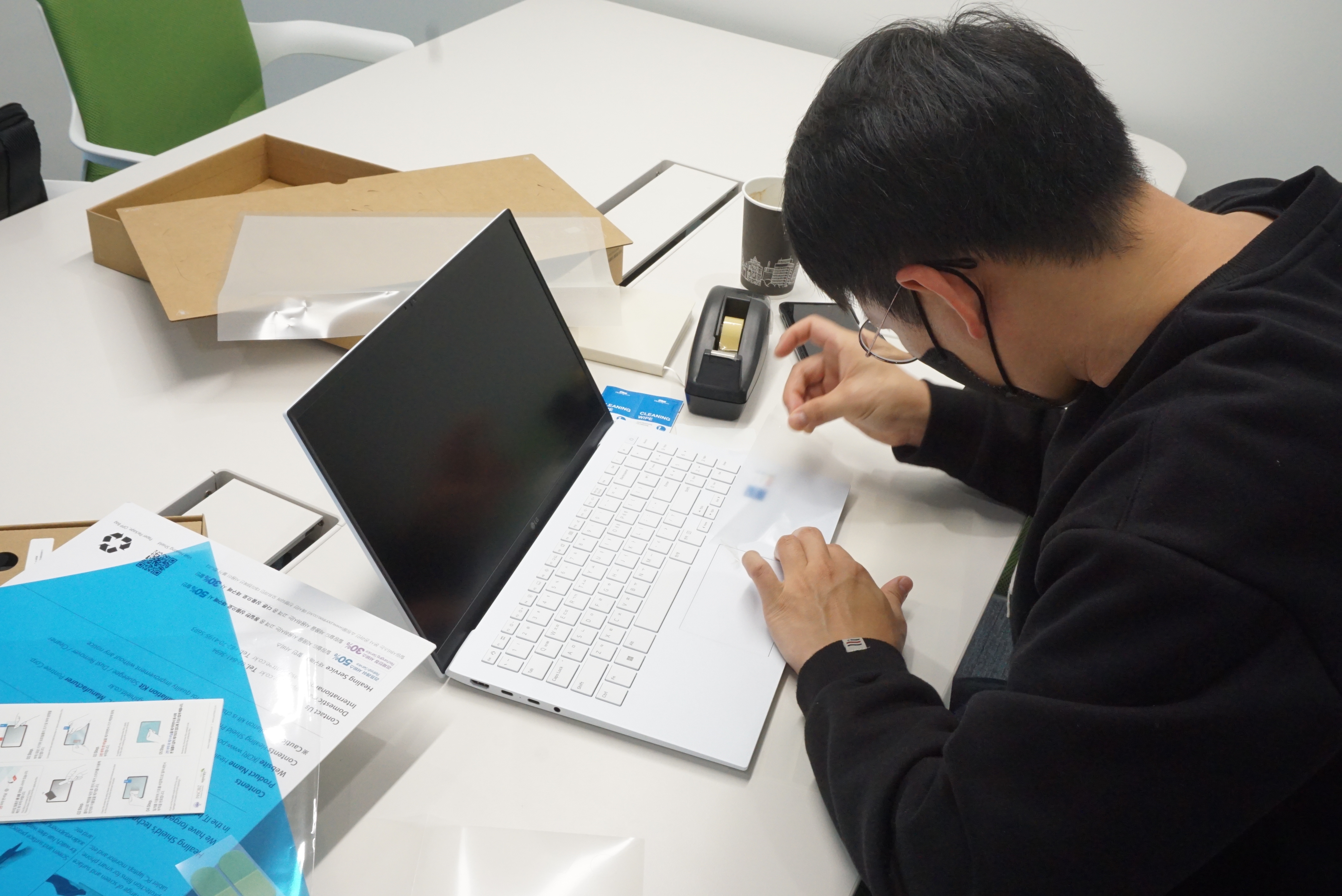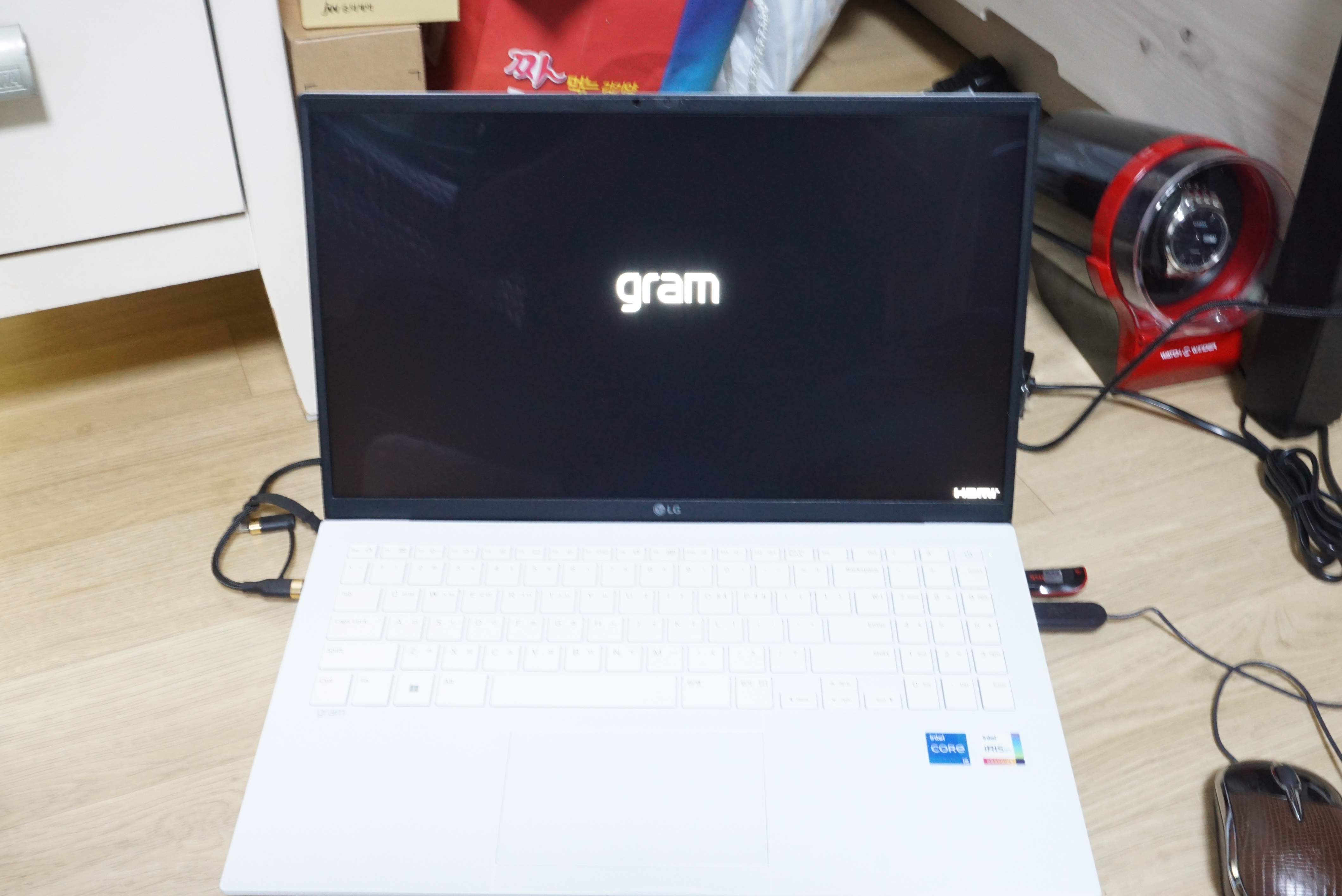 그램은 흰색이라 외부 보호필름 붙이는게 조금 어렵습니다.