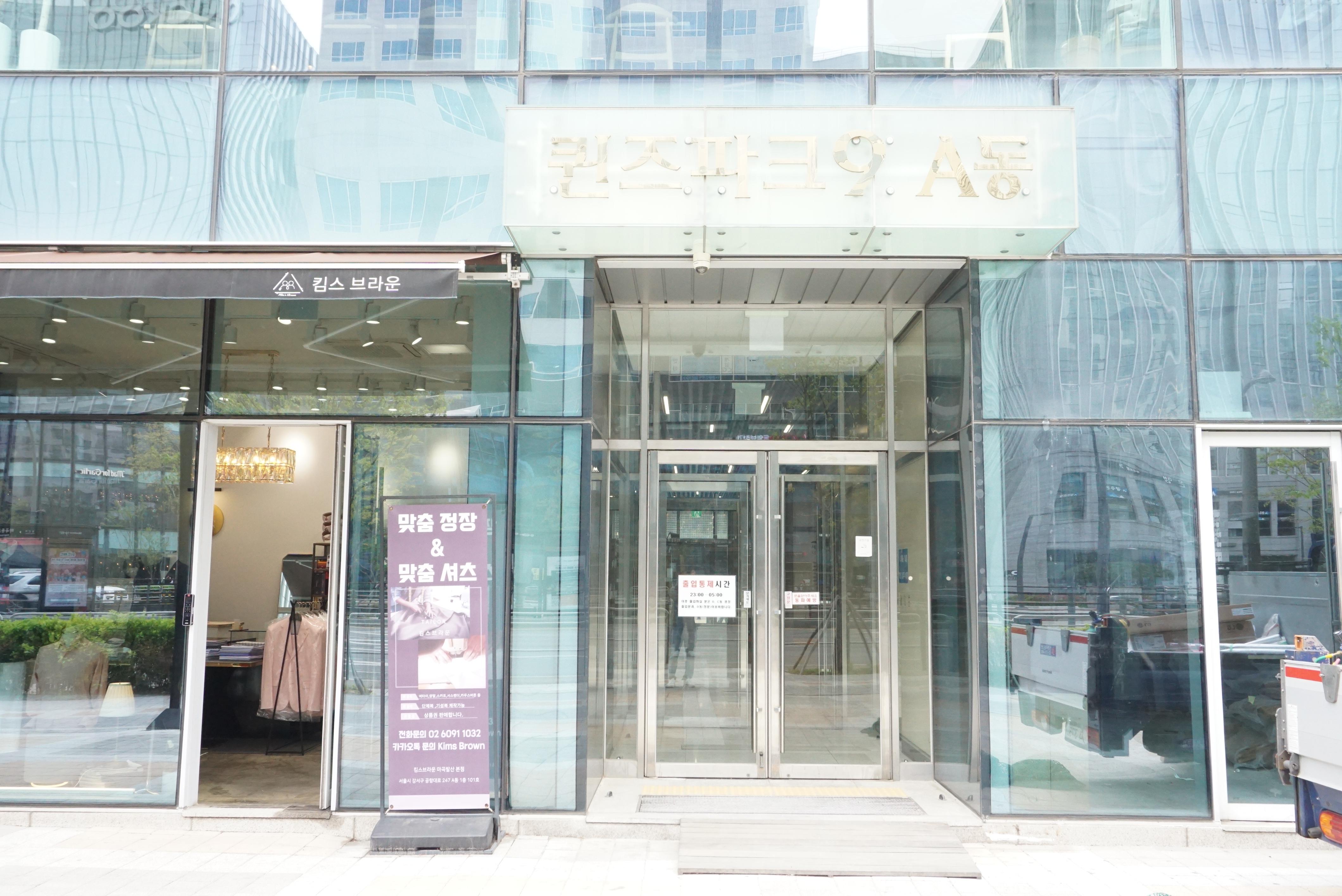 가장 왼쪽에 퀸즈파크나인(9) A동 입구로 들어오시면 됩니다. 킴스브라운 양장점 옆에 입구로 들어오시면 됩니다.