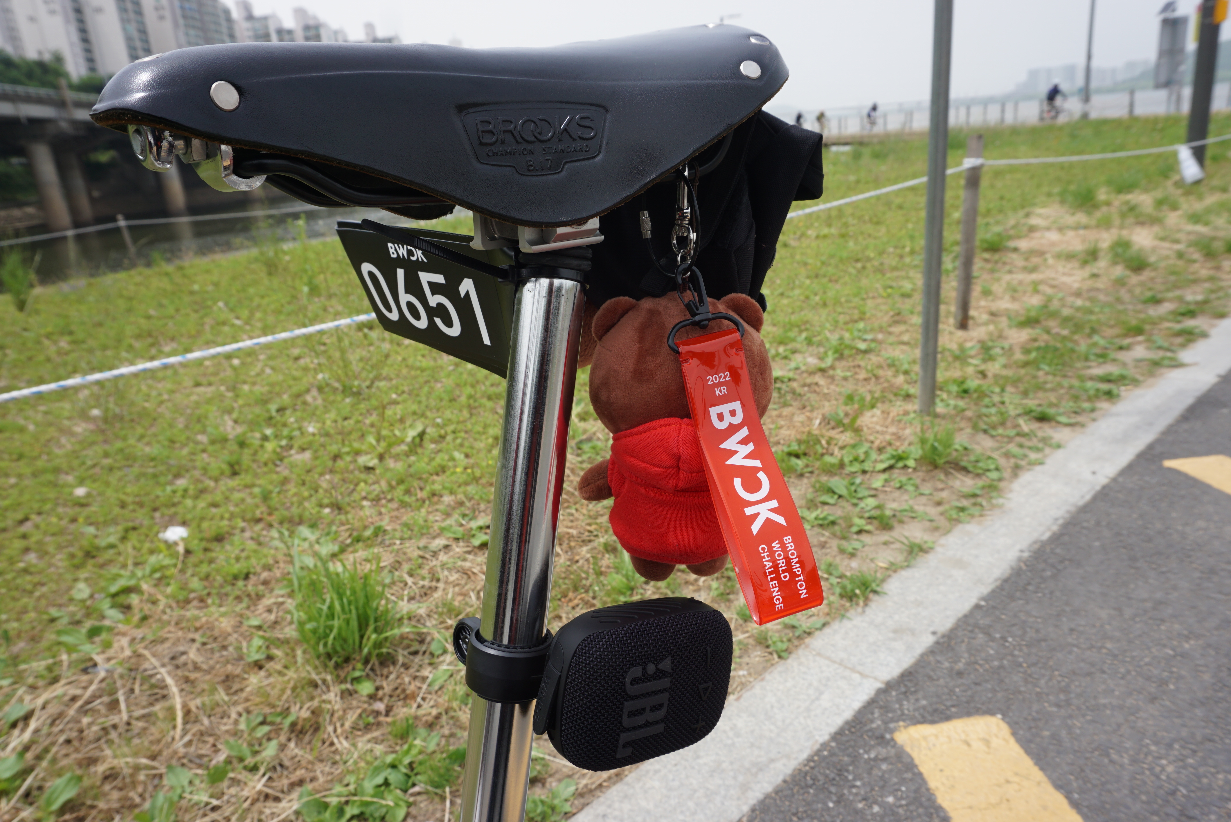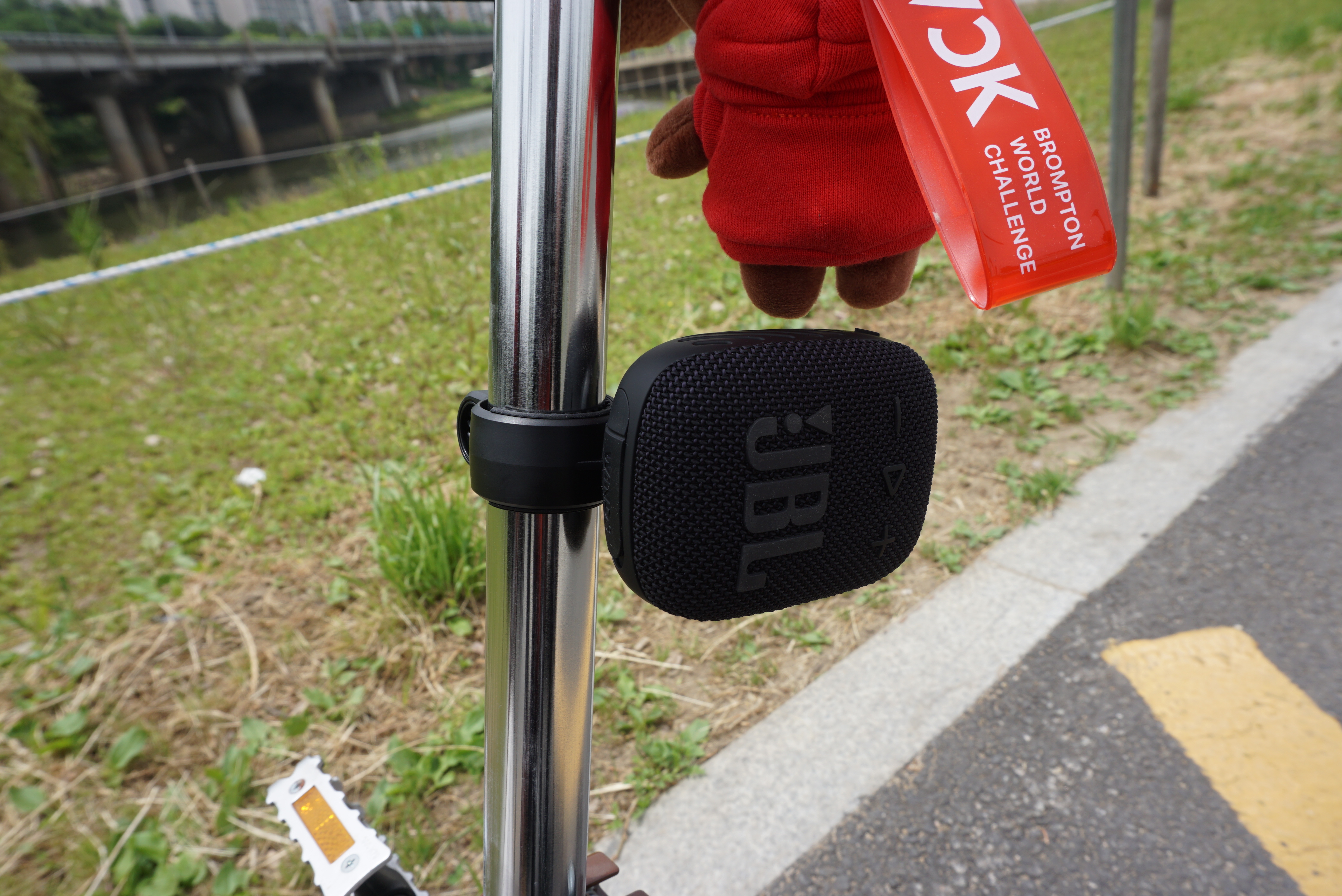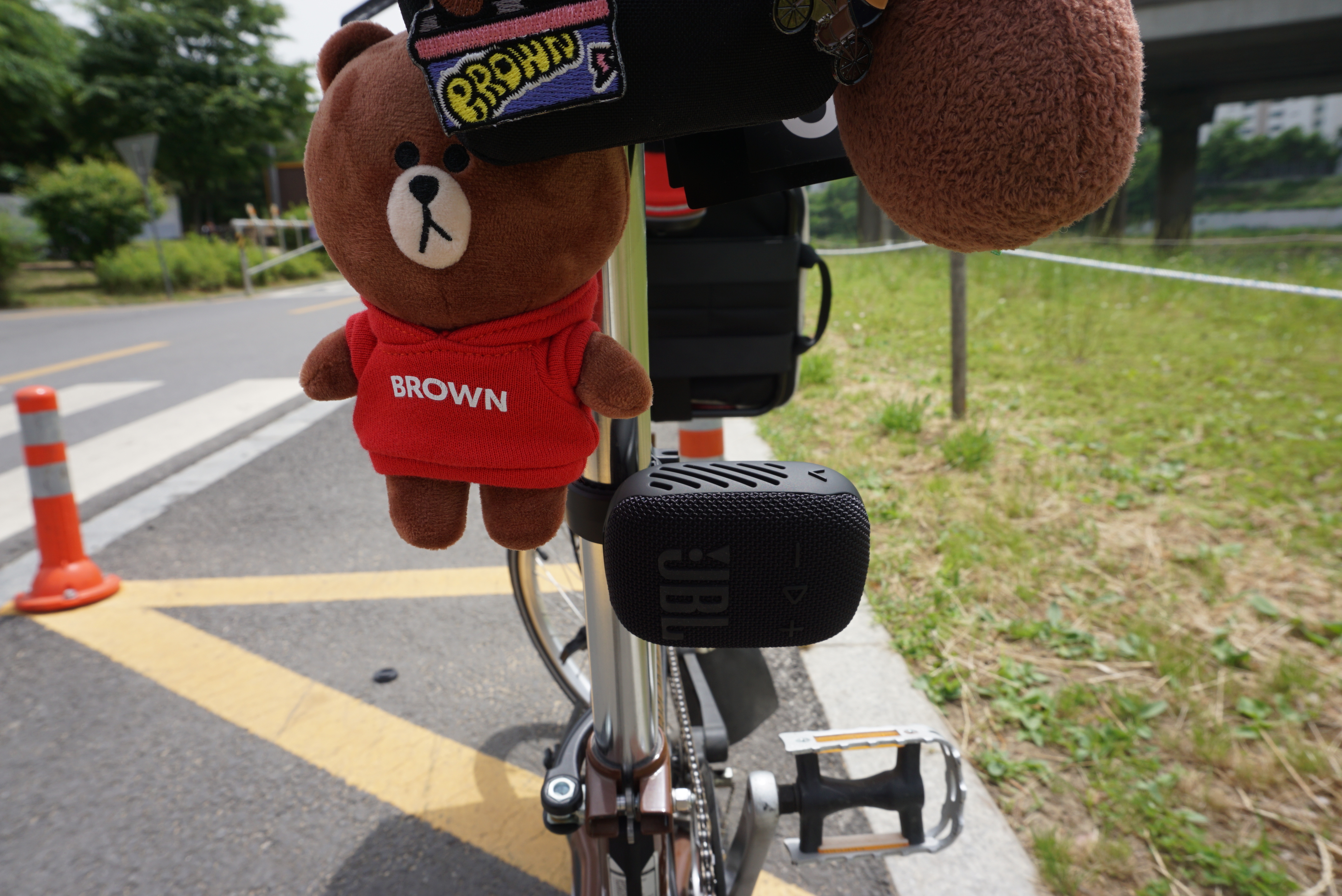안장에도 거치하기 편하네요. 다만 브롬톤은 계속 접었다 폈다 해야 하니 집에 가서 접어둘때는 스피커를 빼야 하는군요.