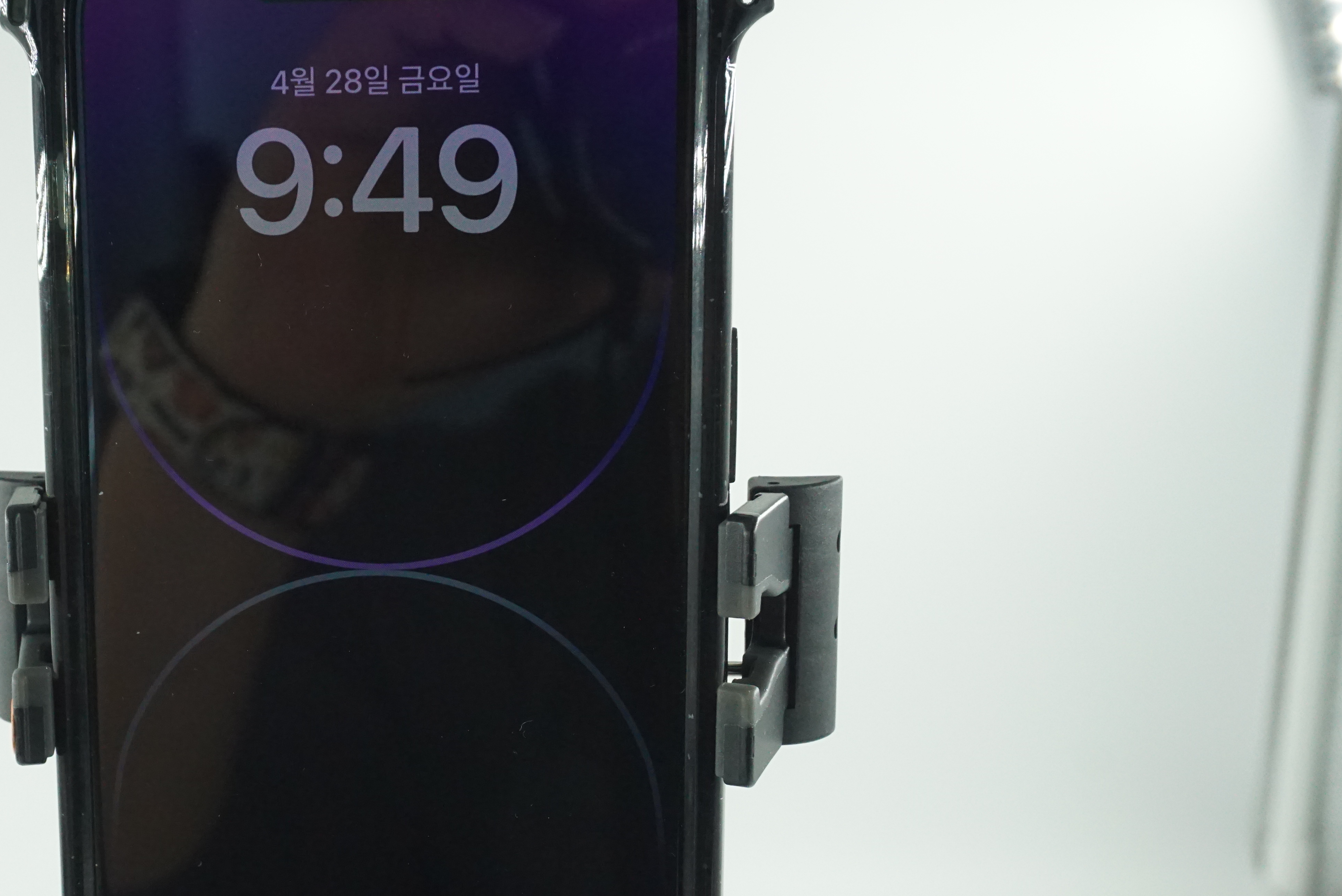 그리고 스마트폰을 거치해봅니다. 생각보다 고정은 단단하게 됩니다.