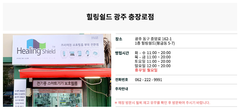 하지만 광주에도 보호필름 전문 부착점 힐링쉴드 부착점이 있습니다.
