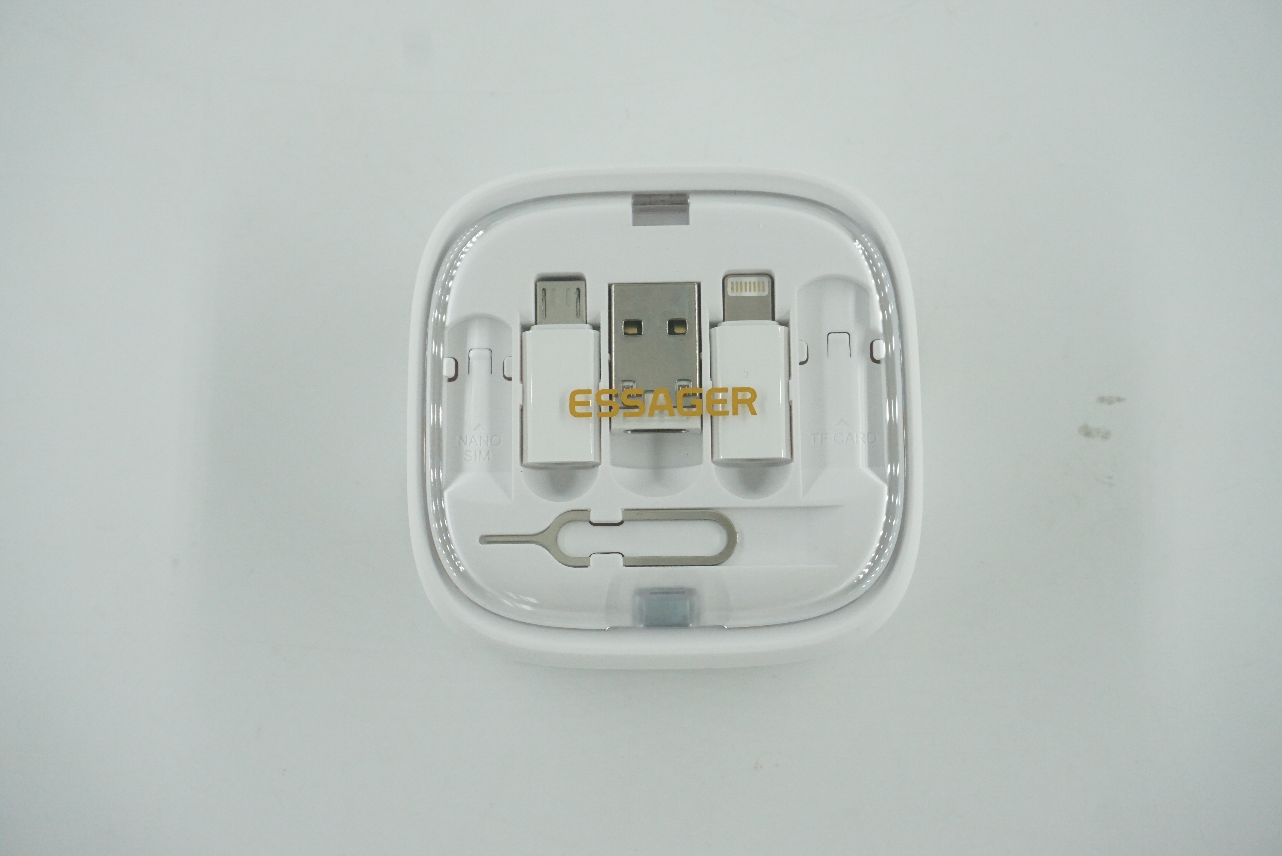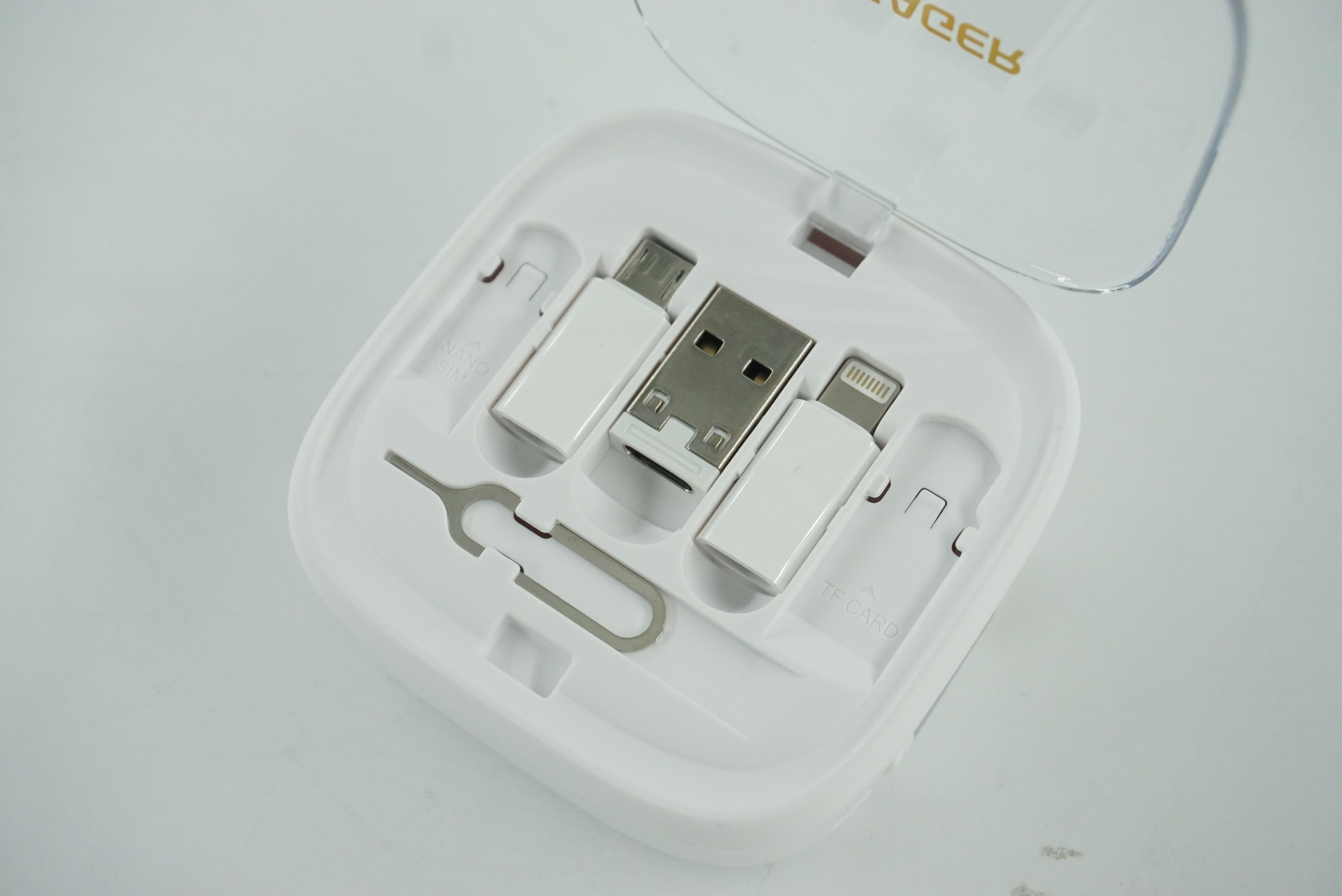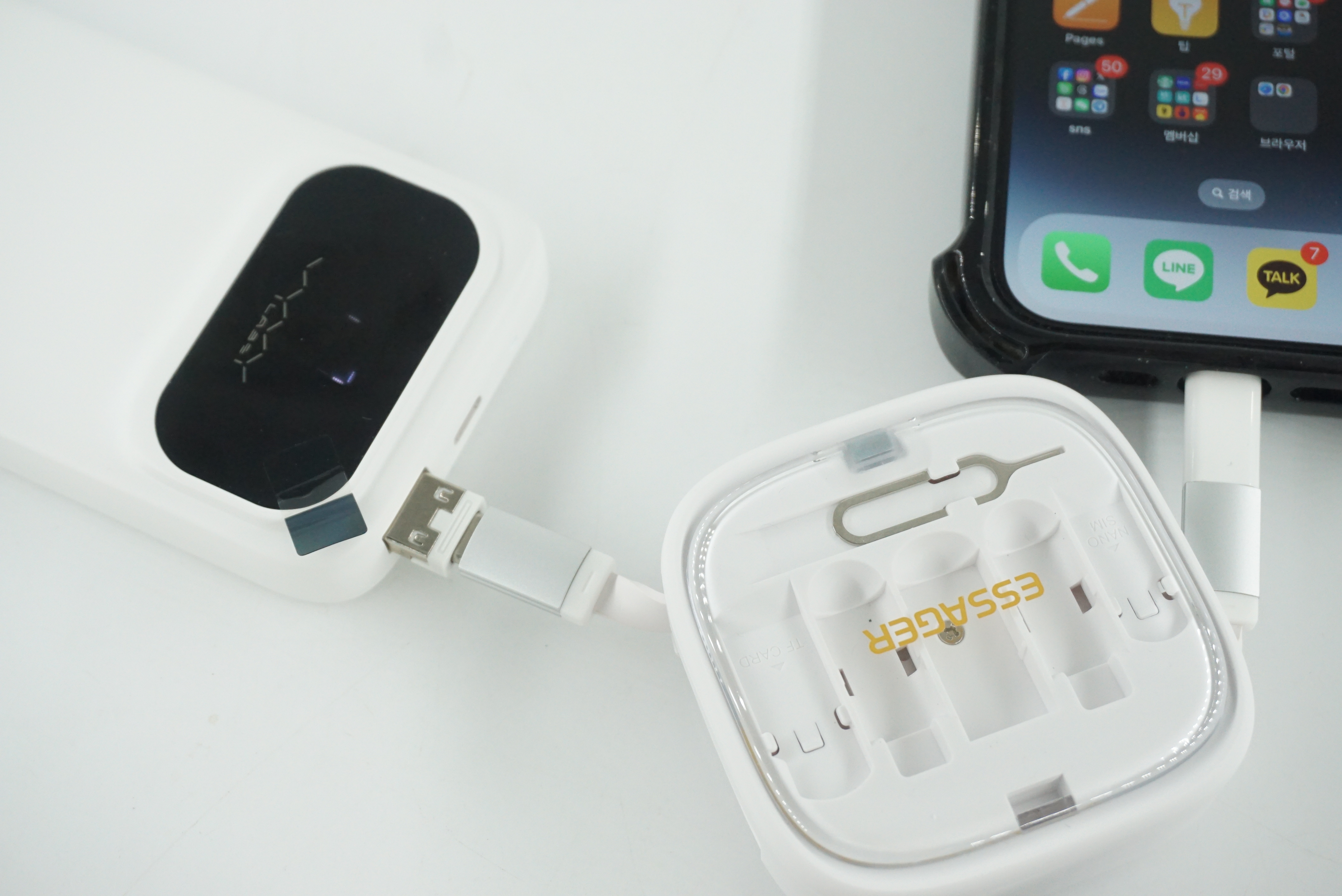구성품은 이렇네요 유심트레이를 열수 있는 핀 하나와 마이크로5핀 젠더, 라이트닝 8핀 젠더 그리고 USB-A 젠더