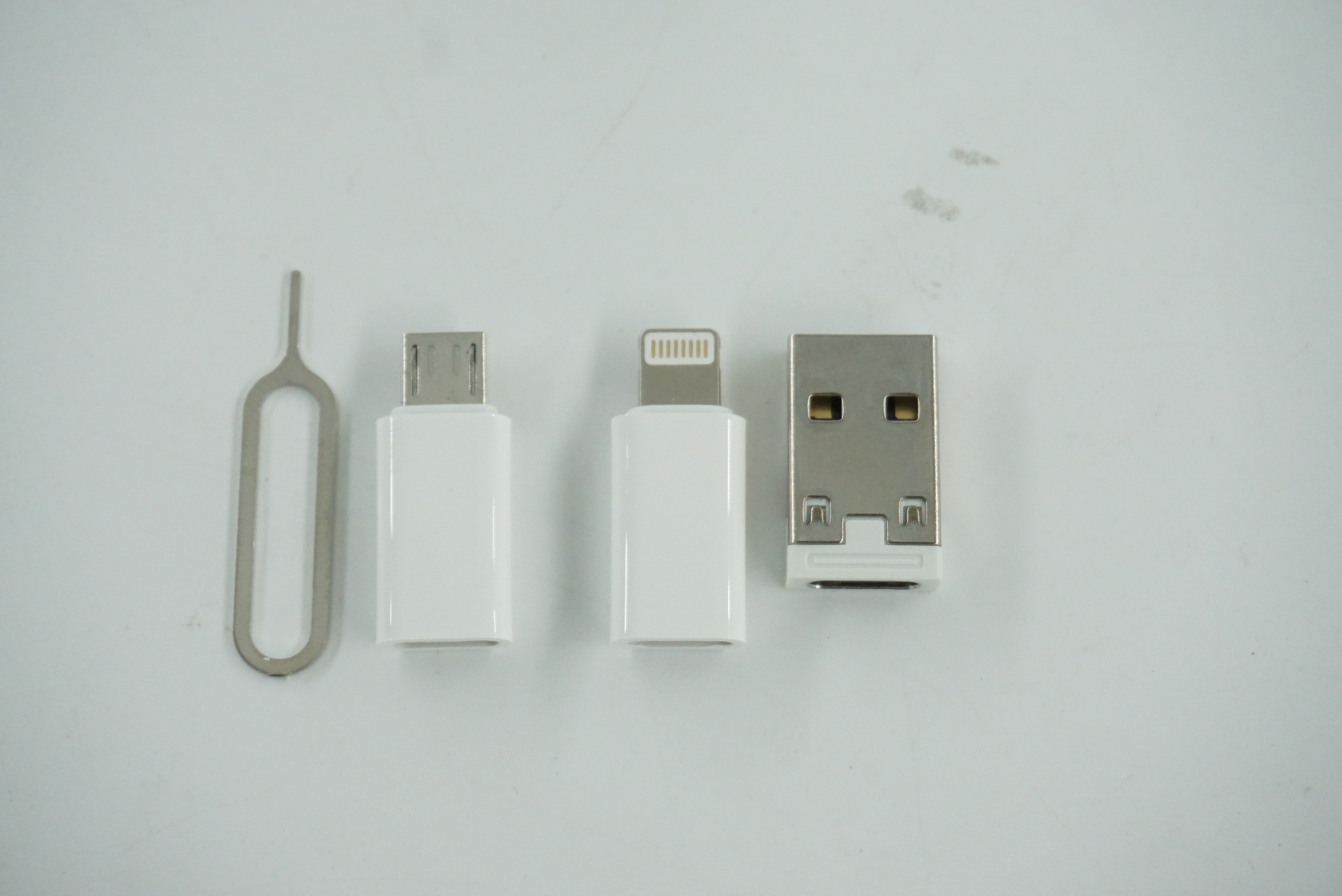 일단 마이크로5핀 젠더 1개와 라이트닝 젠더 1개 그리고 USB-A 젠더 1개와 유심 트레이를 뽑을수 있는 핀 하나