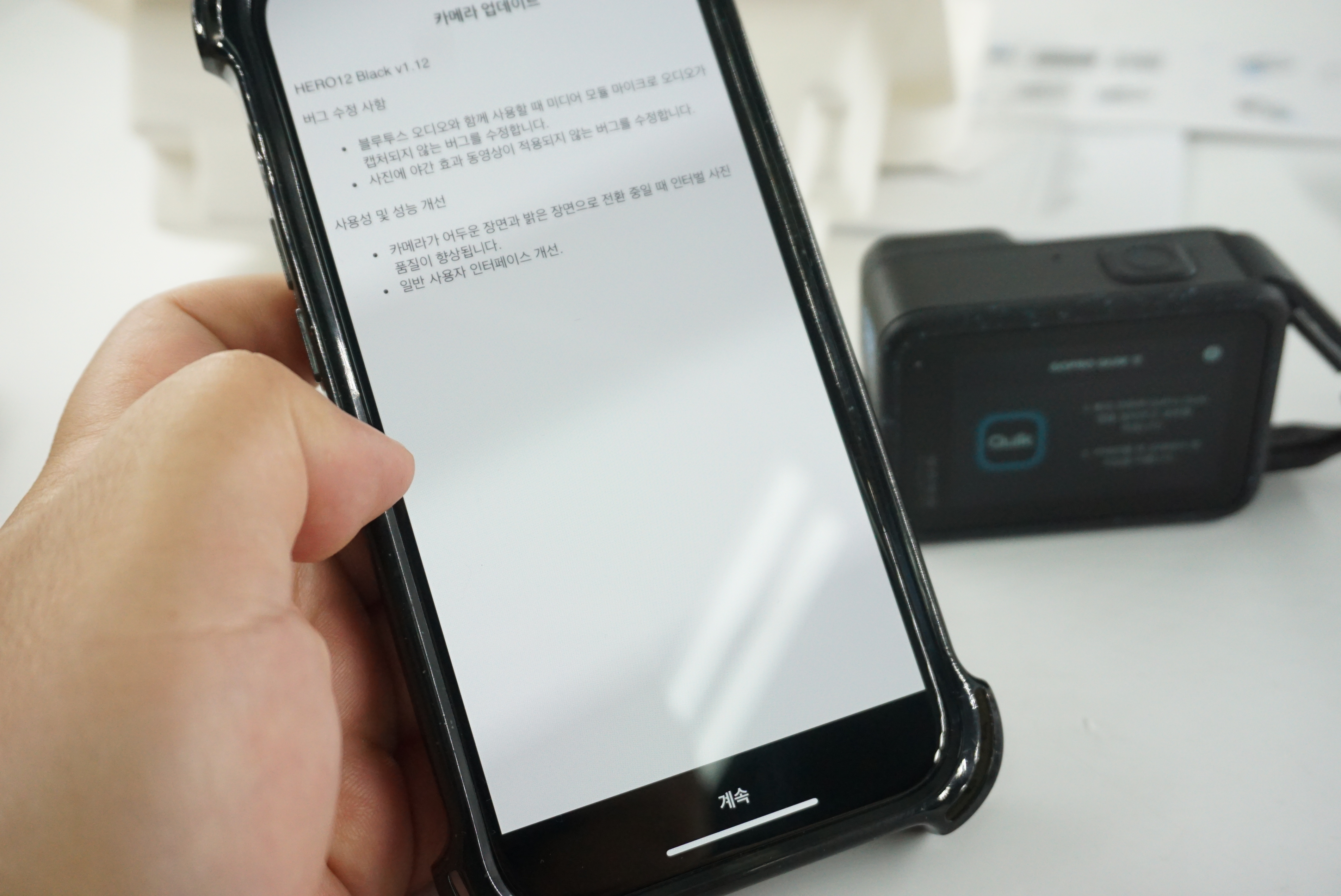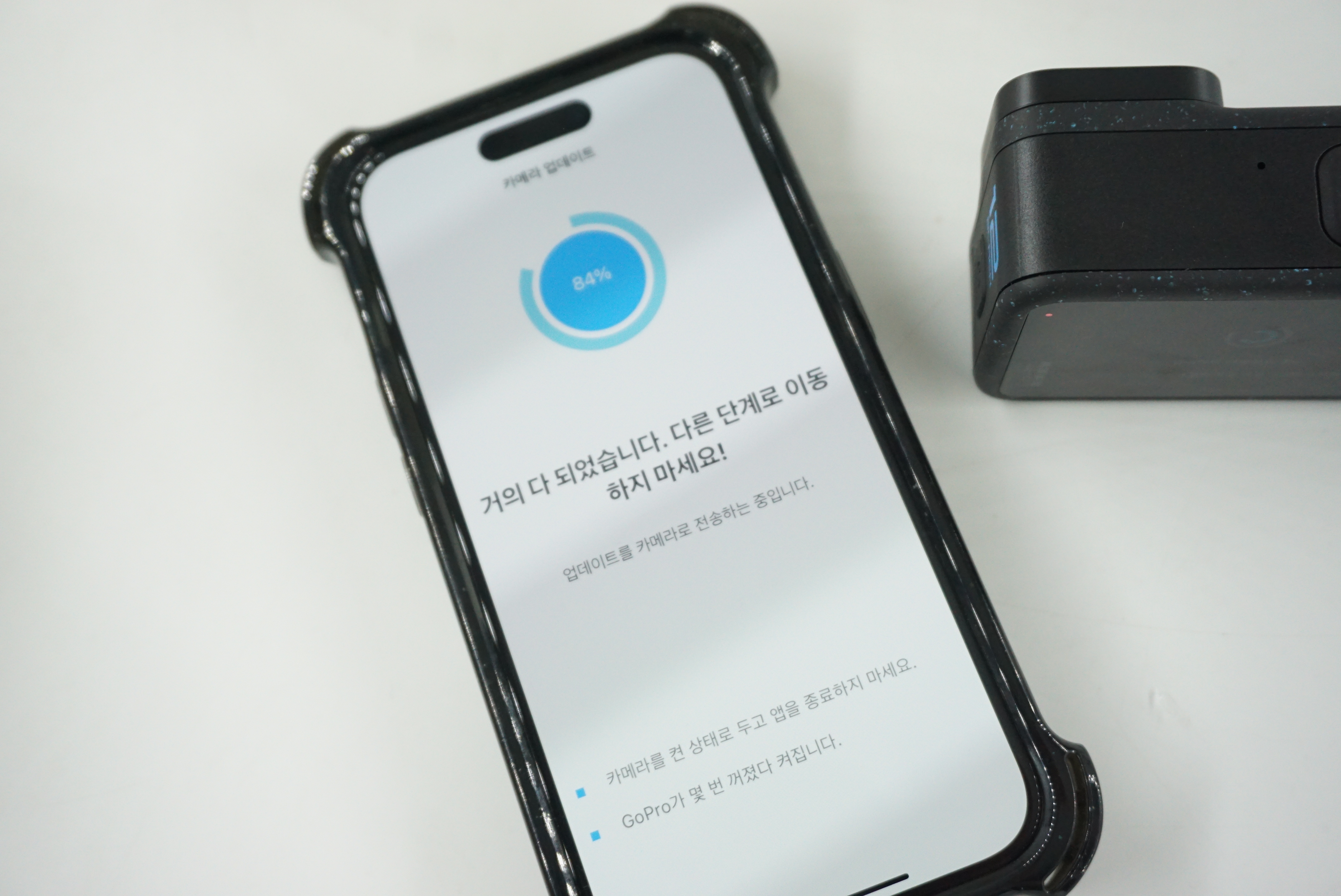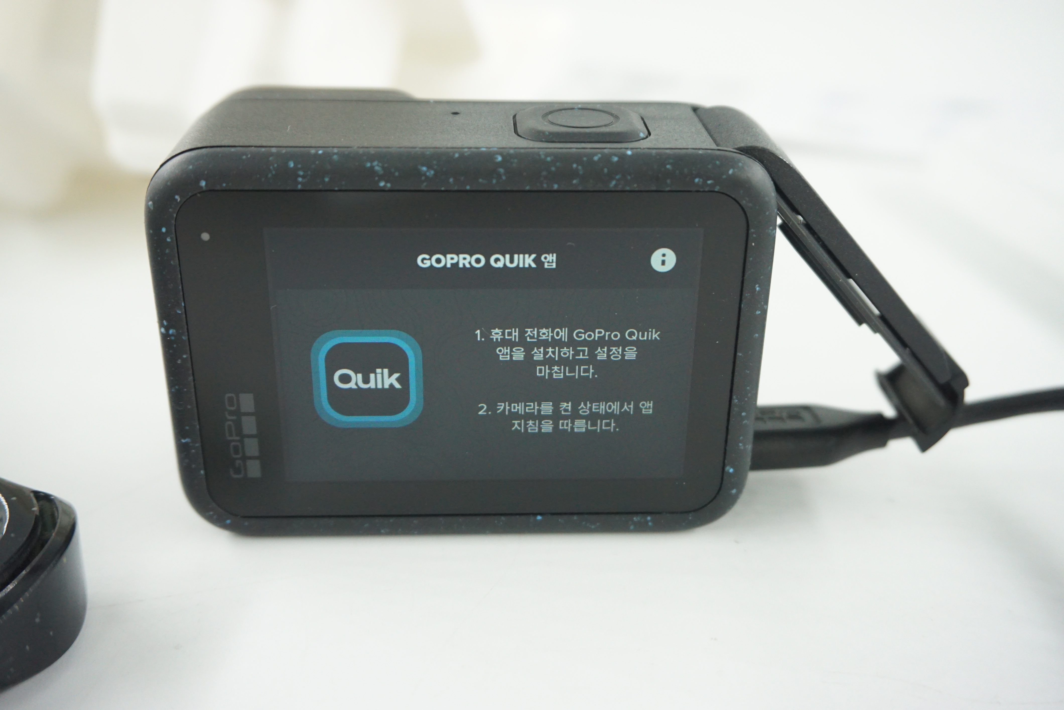 전원을 물린 상태로 업데이트를 합니다. 고프로 퀵앱과 연동도 됩니다.