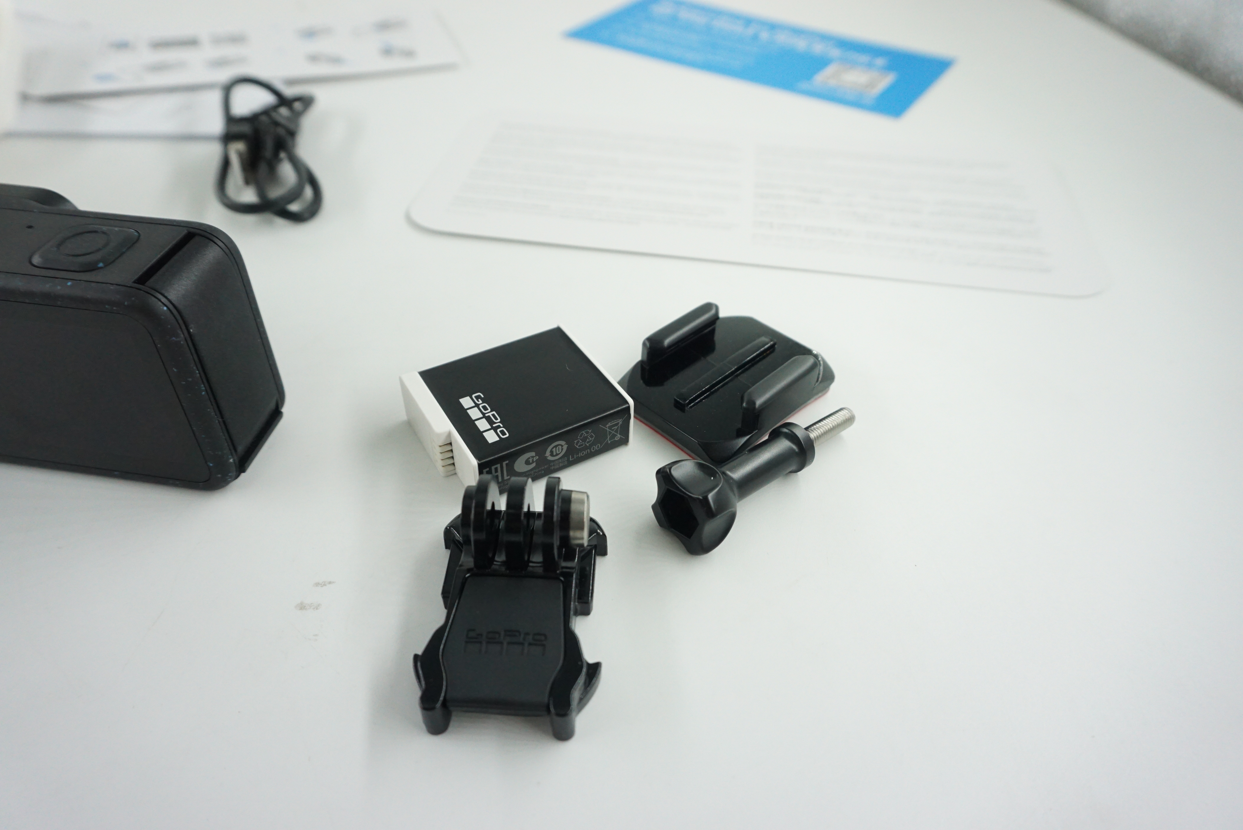 악세사리 입니다. 헬멧에 붙이는 마운트와 부착거치대 그리고 배터리 1개가 들어있습니다.