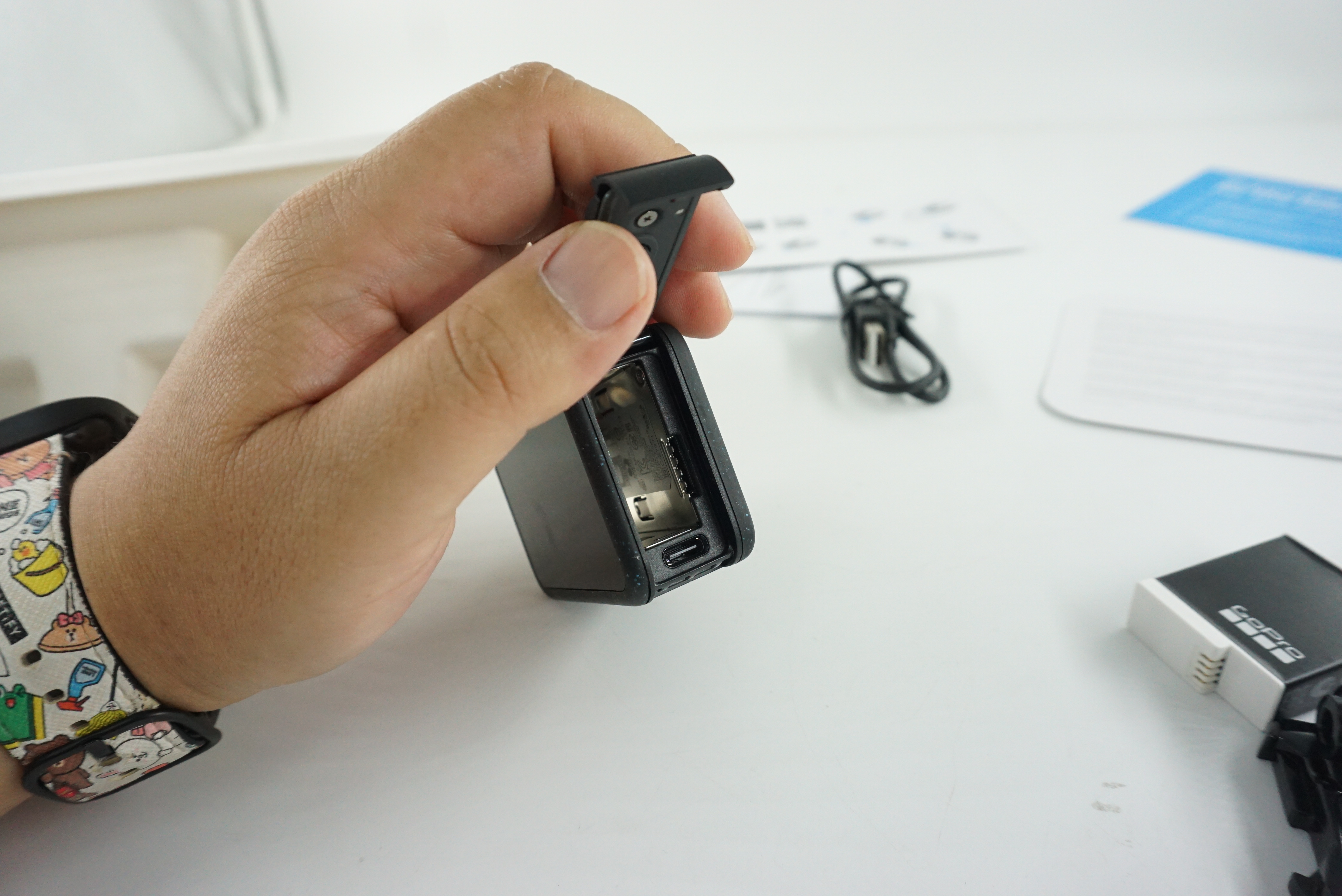 고프로12의 본체입니다. 외형은 기존의 9,10,11과 동일한듯 합니다. 다만 표면에 색상얼룩이 달라진듯 합니다.