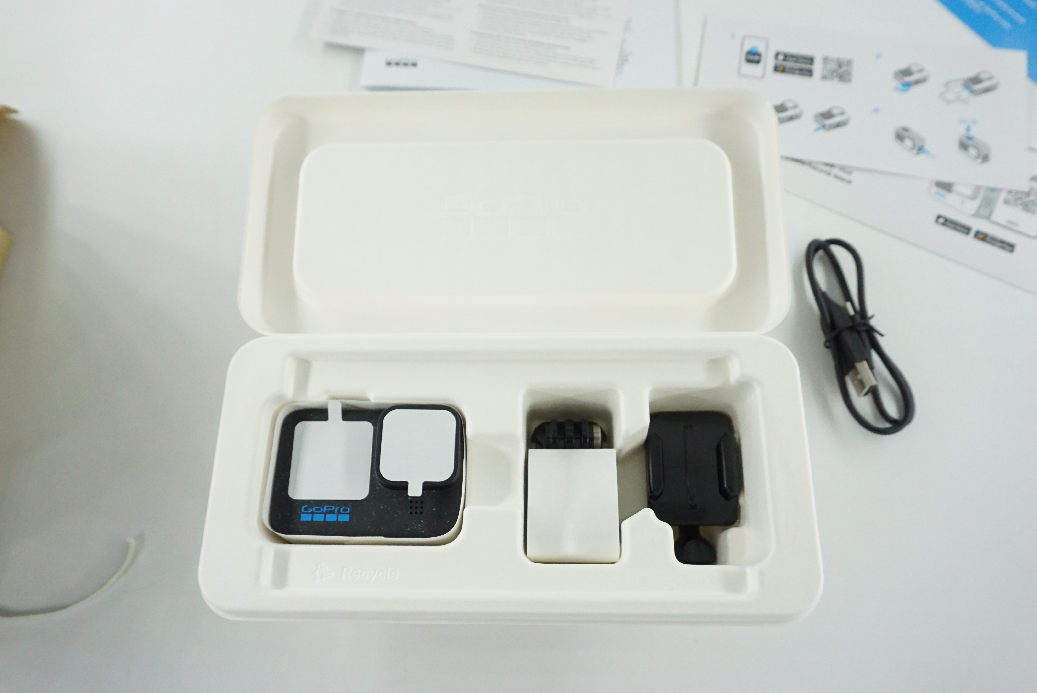 박스를 열어봅니다. 본체와 헬멧 마운트 그리고 거치대와 케이블이 들어있습니다.