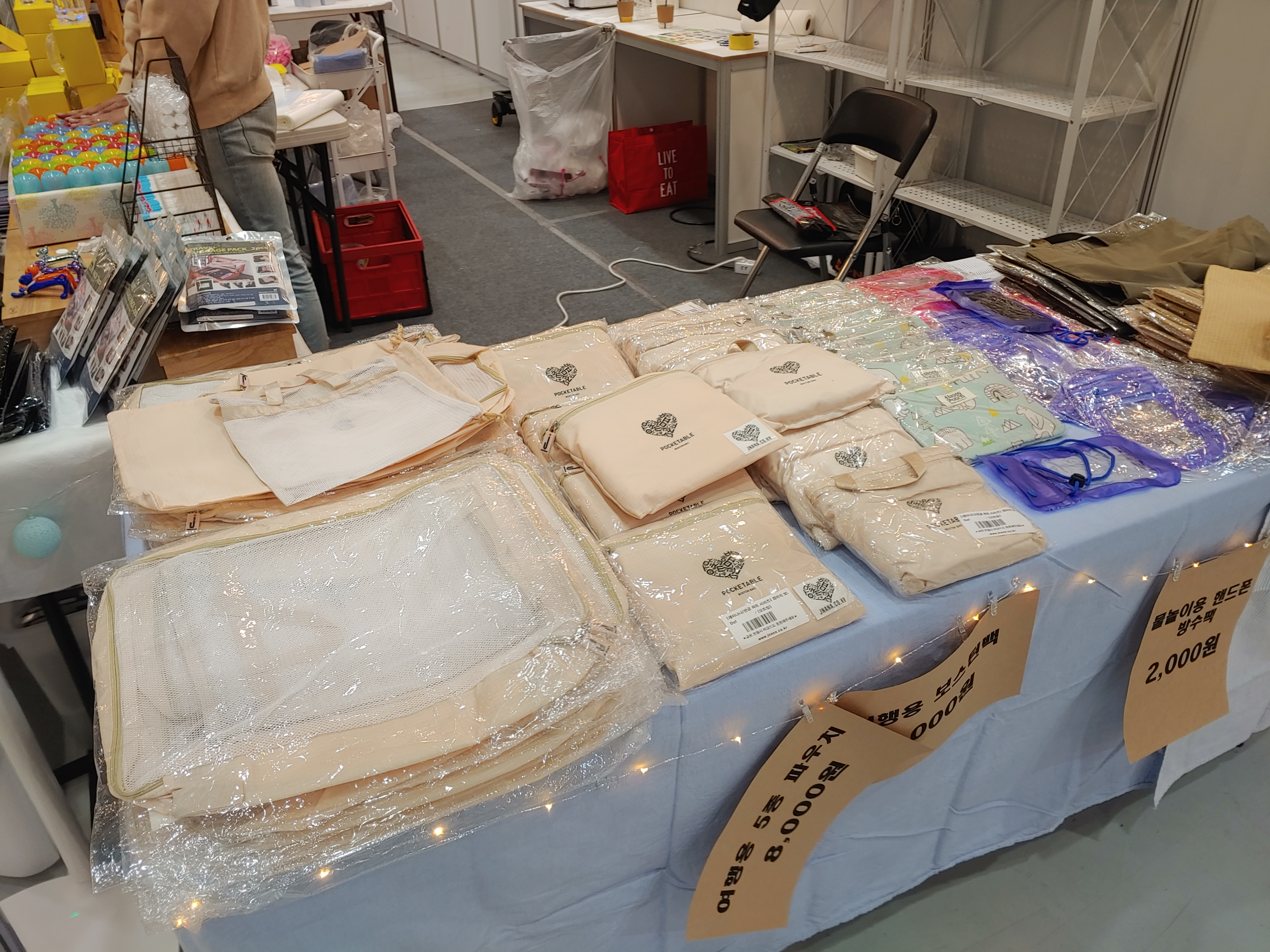 다양한 여행용 파우치를 판매하는 부스가 보였습니다. 예쁜 파우치가 많네요.