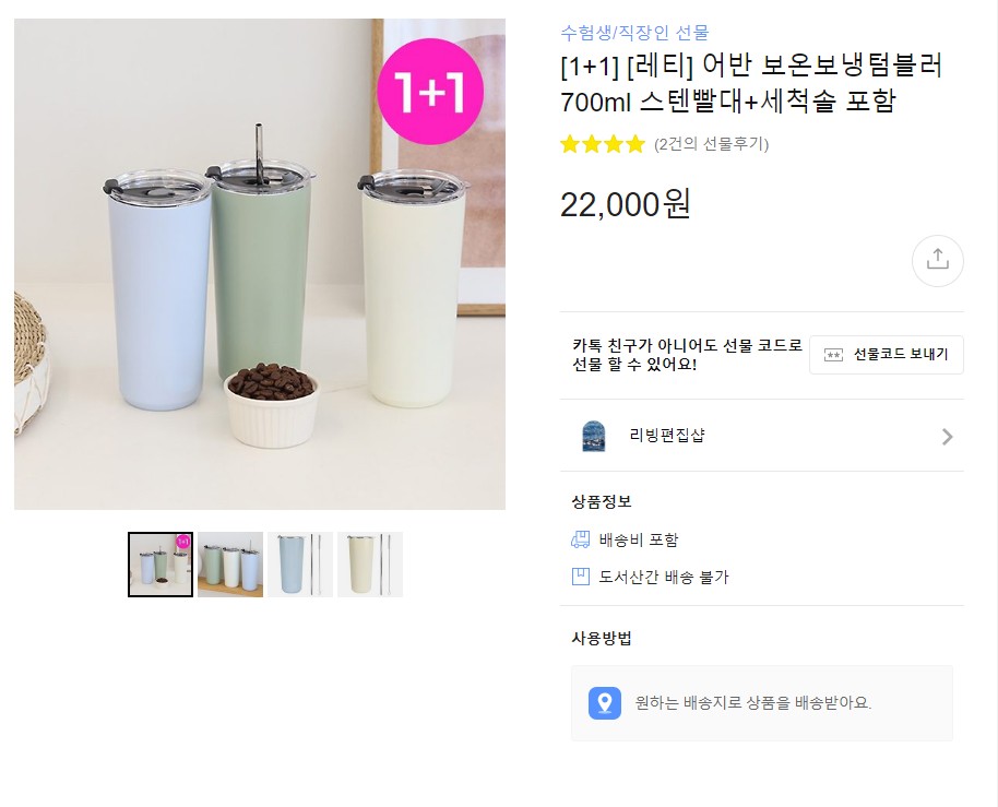 1+1 구성으로 카카오톡 선물하기에서 판매하는 레티텀블러