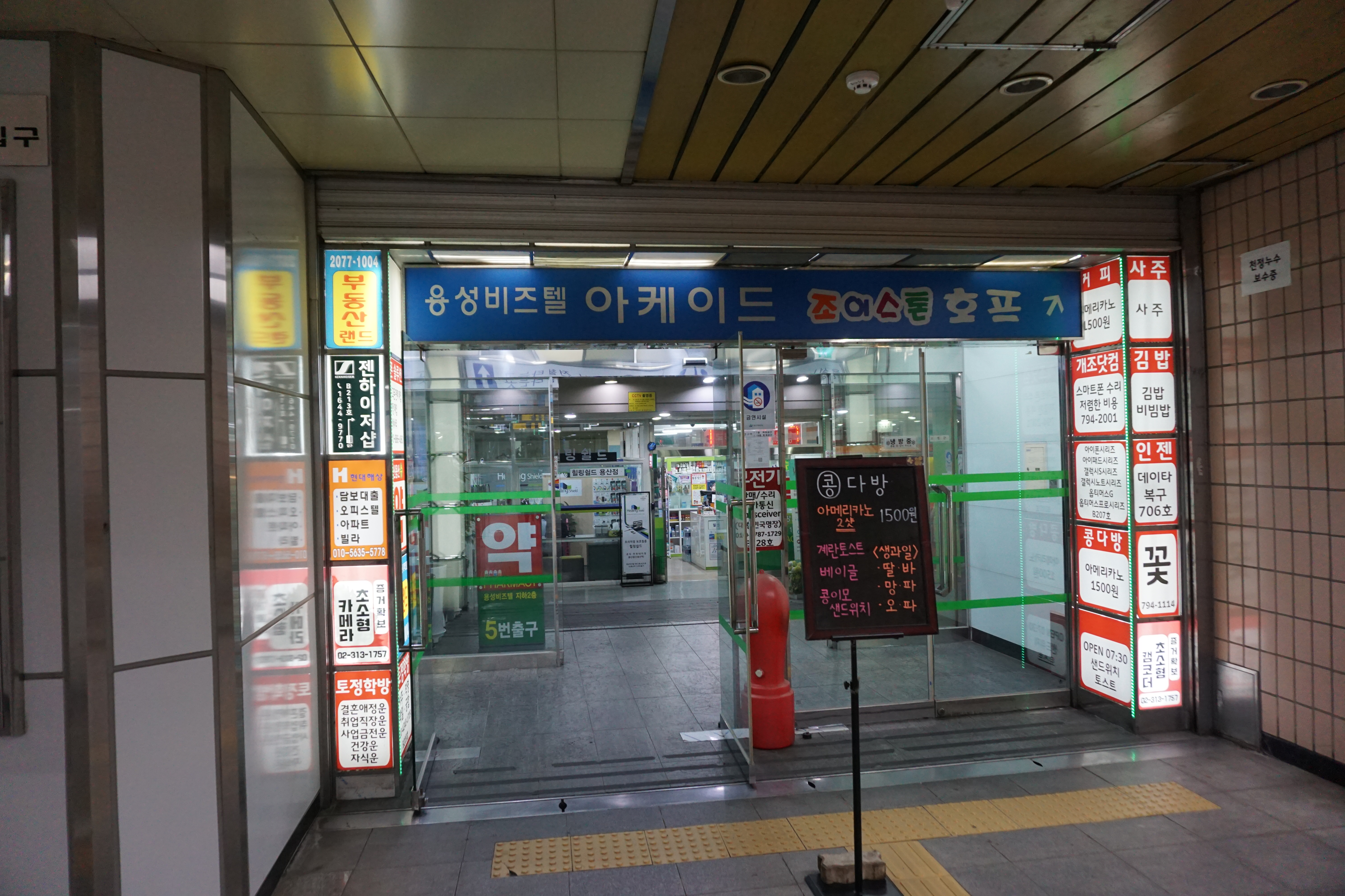 신용산역 5번출구로 나가기 직전에 건물과 연결된 작은 통로가 있습니다.