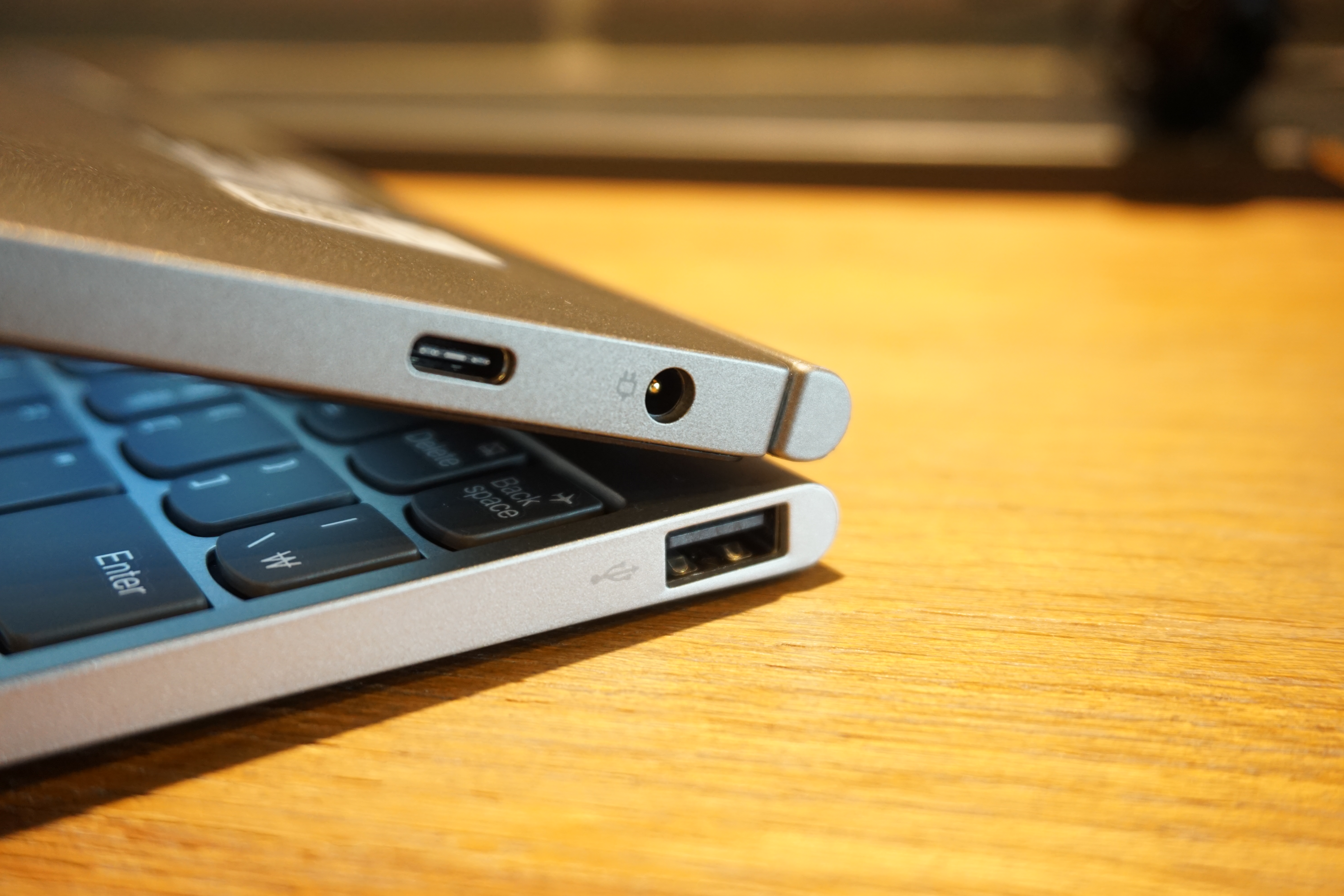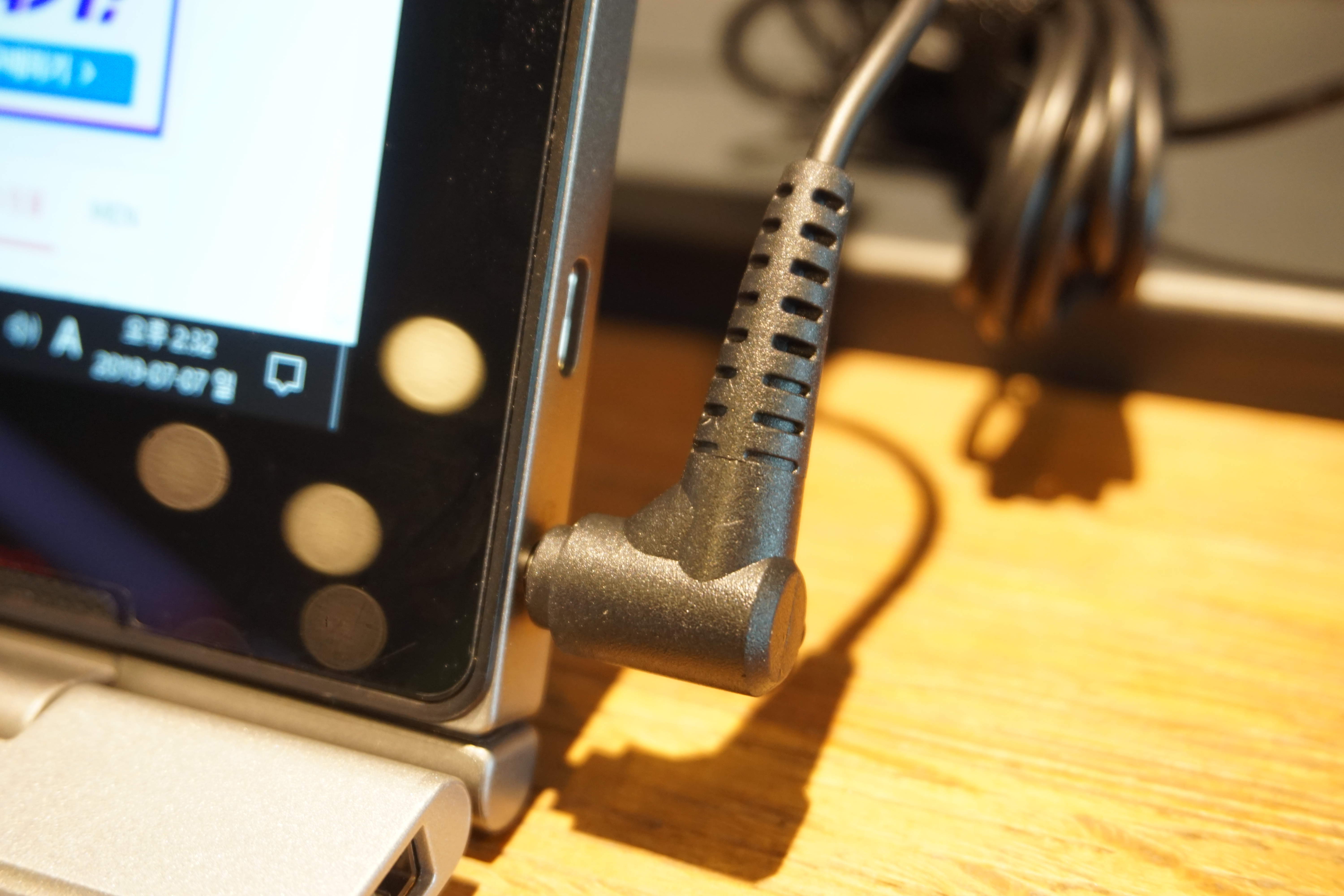 좌측에는 C타입 단자와 전원 아답터 잭이 있습니다. PD충전 지원으로 아답터가 없어도 USB C타입으로도 충전이 가능합니다.