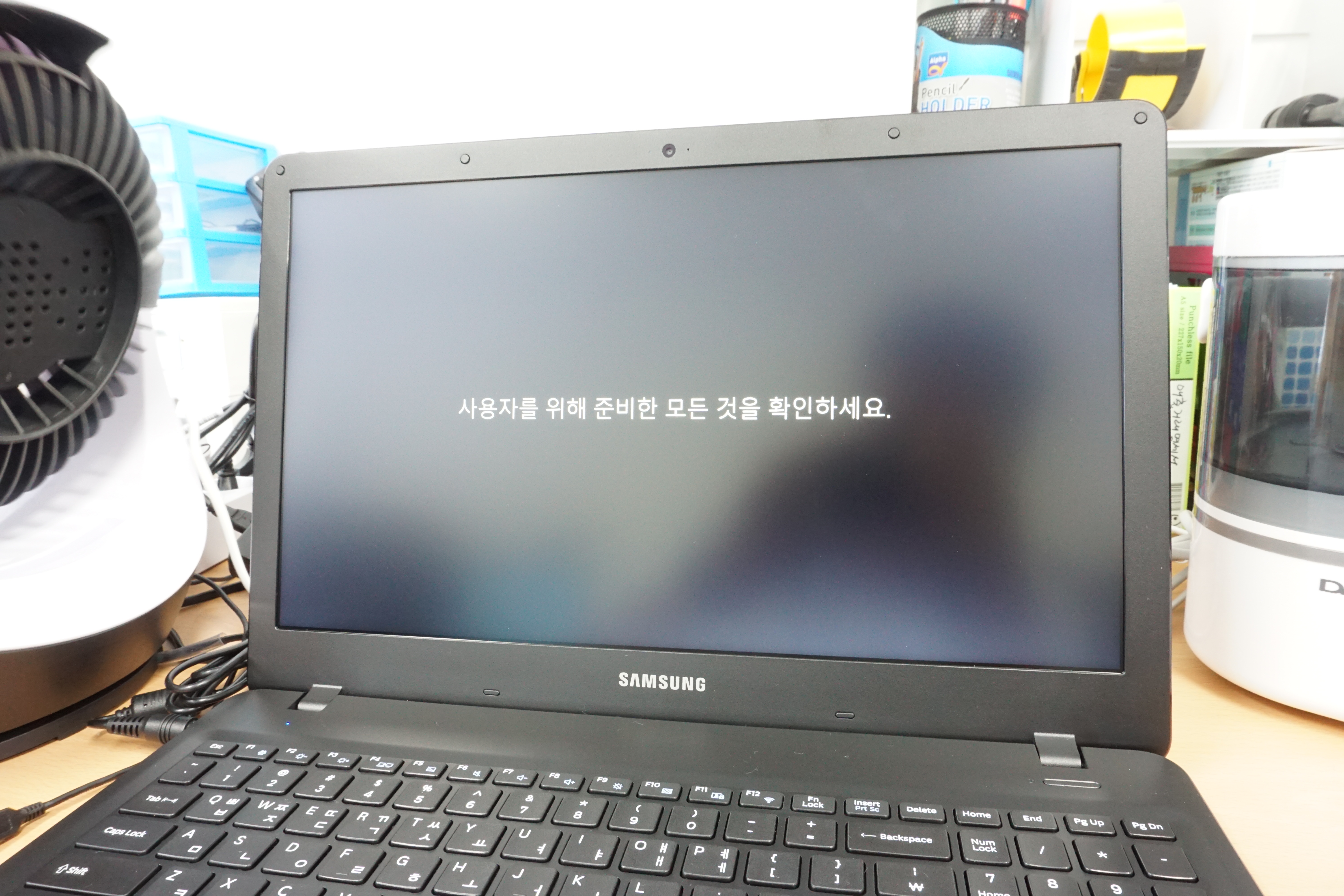 아무래도 SSD가 아닌 HDD 모델이다보니 시간이 조금 걸리는데요 약 10분정도 소요되며 사용가능한 상태가 됩니다