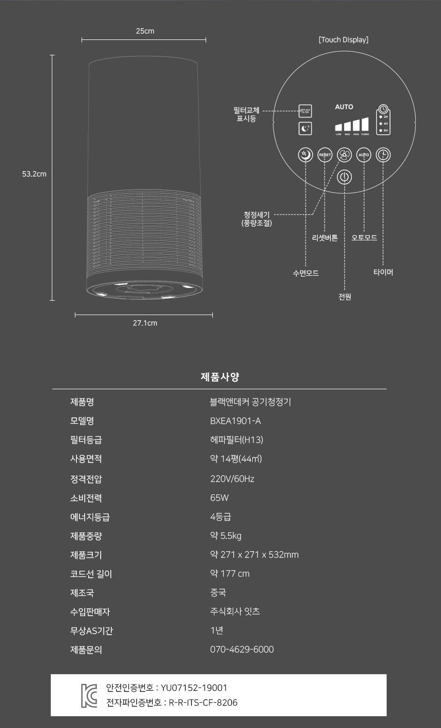 이번제품은 공구로 유명한 블랙앤데커 사에서 출시한 공기청정기 BXEA1901-A 입니다.