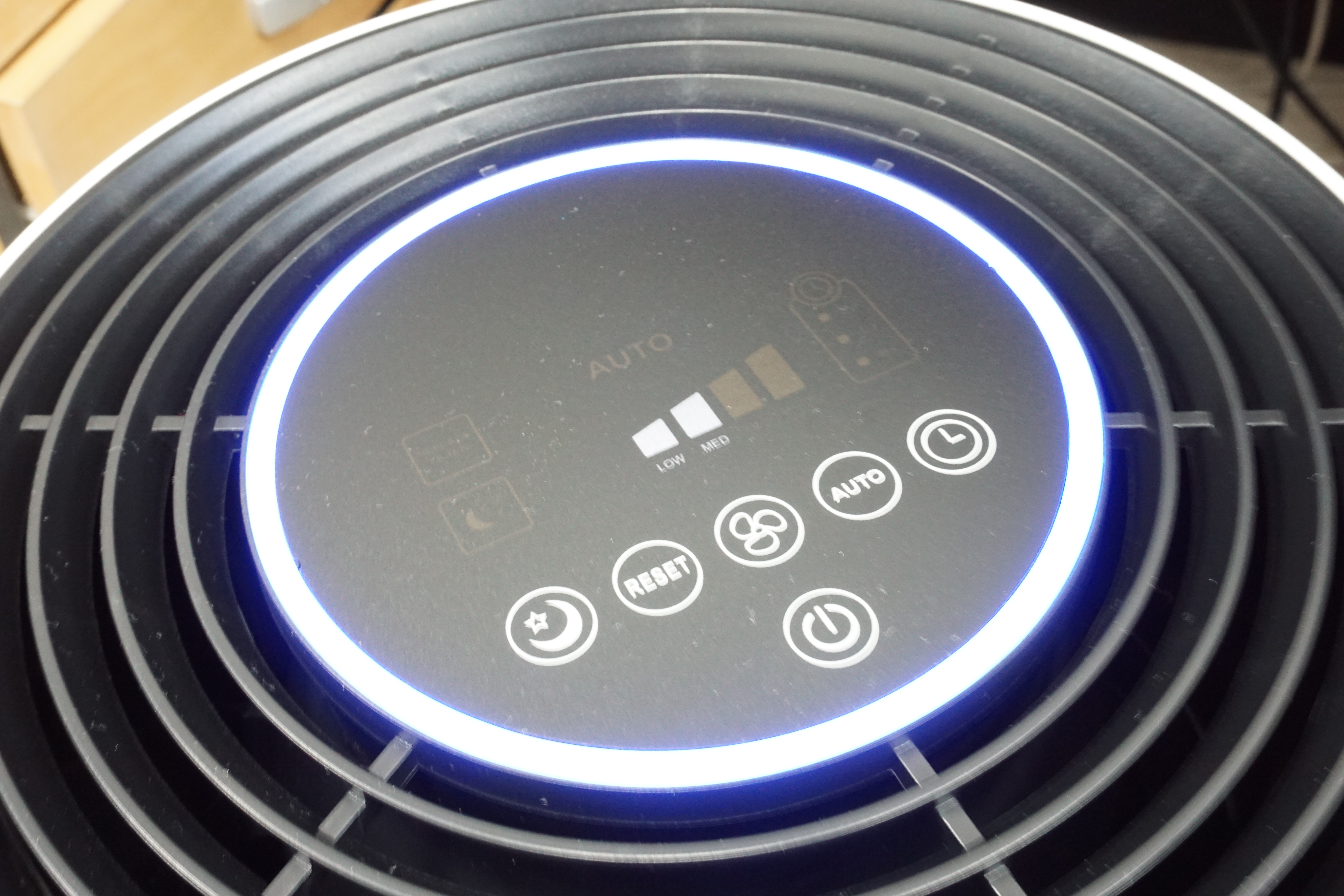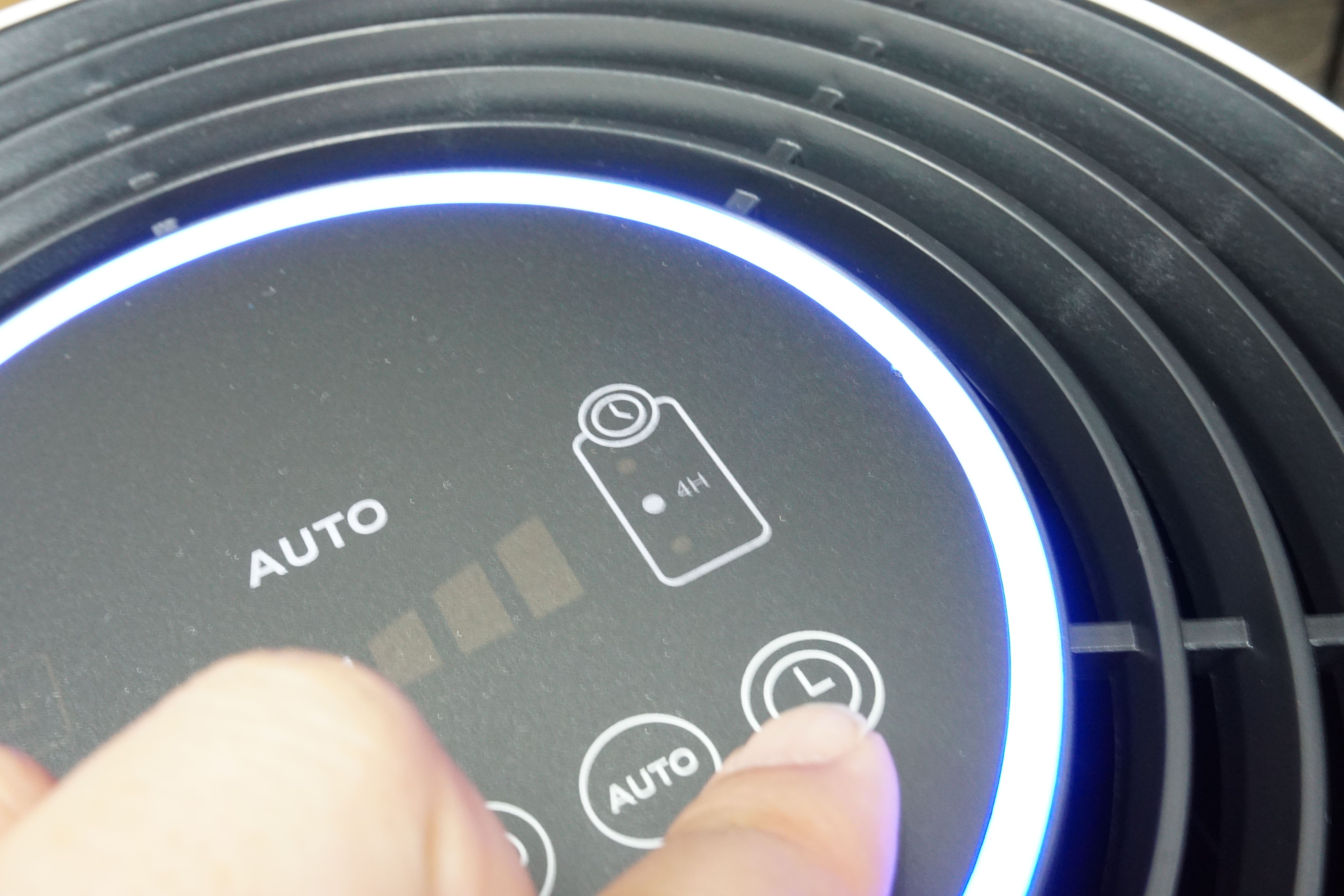전원을 켜면 이렇게 아크원자로 처럼 불이 들어옵니다. 총 4단계로 공기정화의 단계를 선택할수 있습니다.