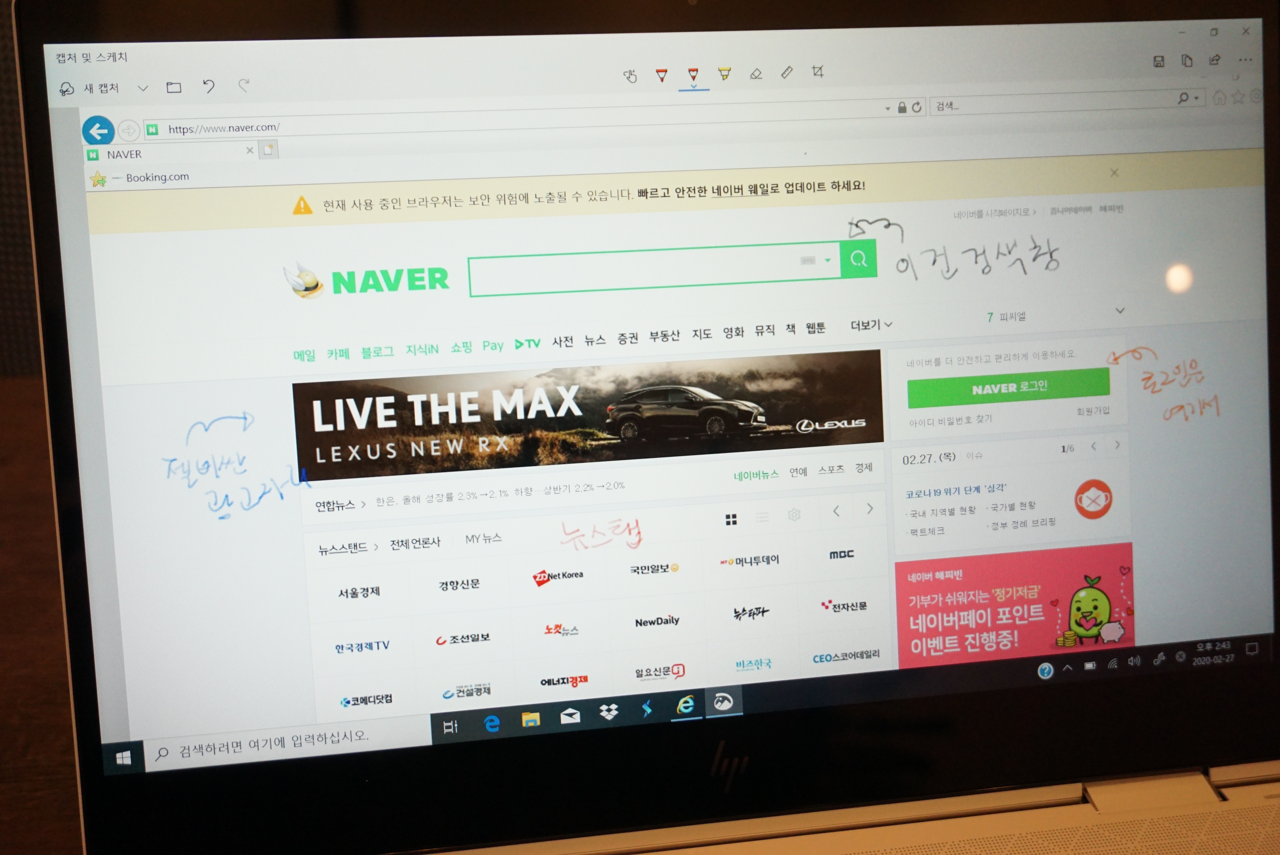 윈도우즈 잉크모드를 사용하면 재미있는 기능이 아주 많습니다