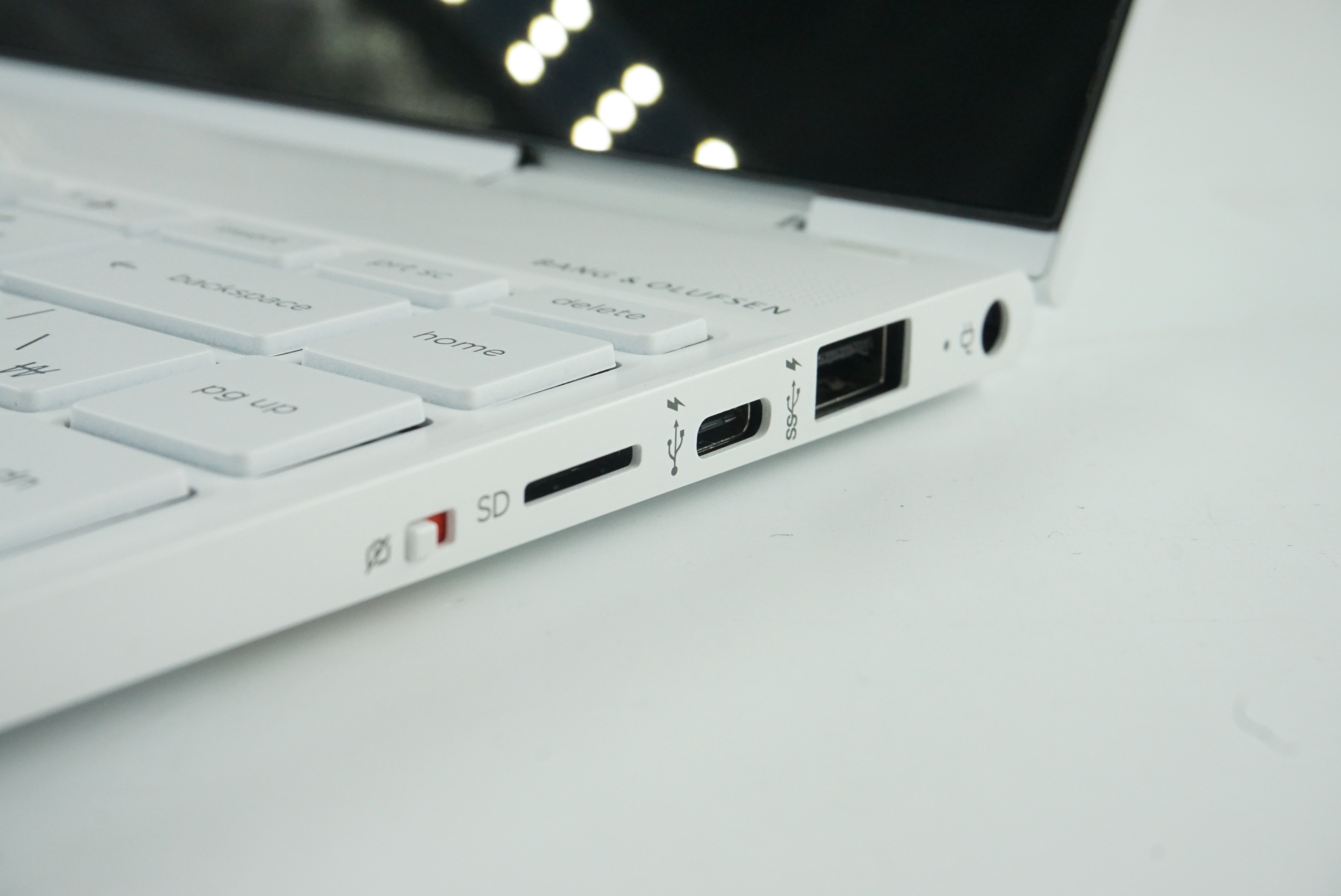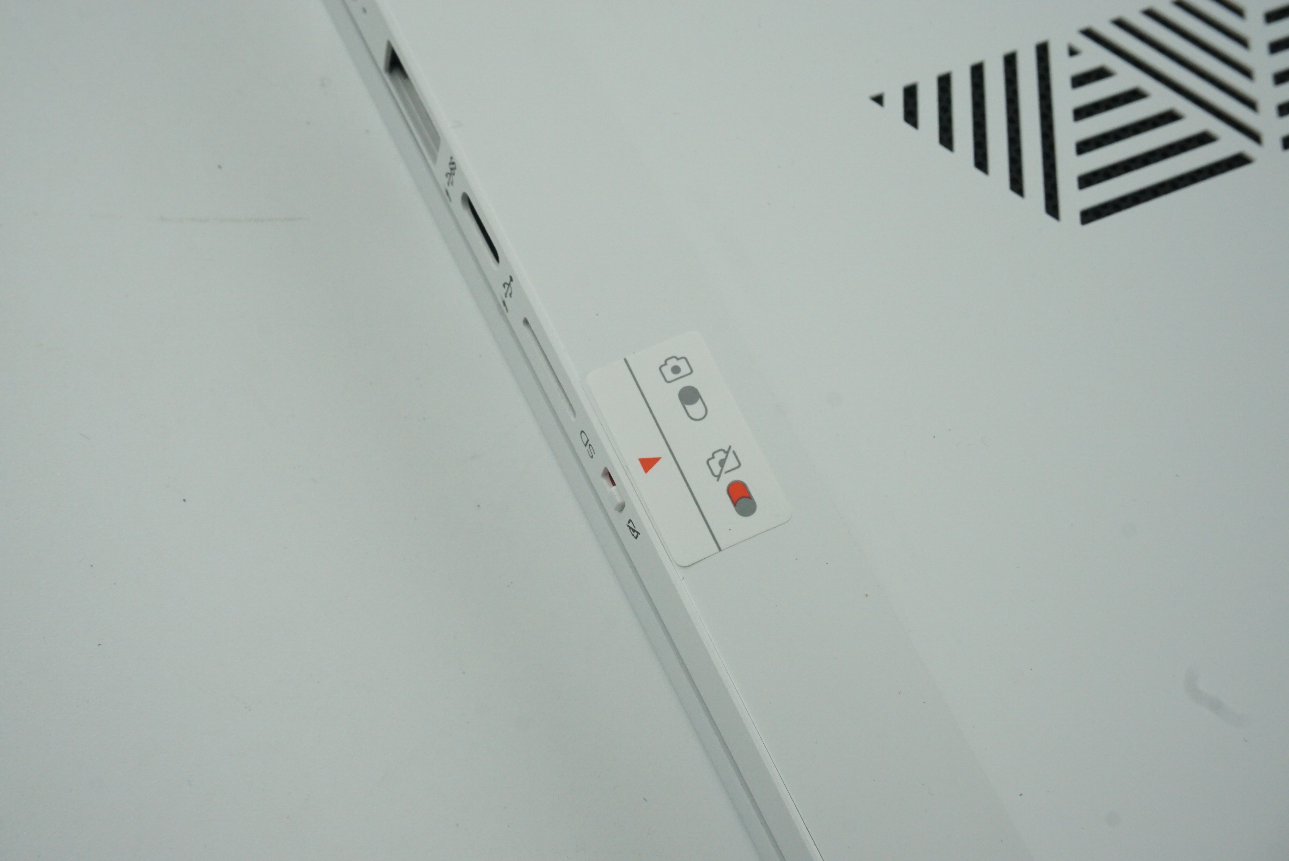 오른쪽 구성부분입니다.카메라 보안 스위치와 마이크로SD슬롯과 USB-C타입의 포트 그리고 USB포트와 전원 포트로 구성되어있습니다.