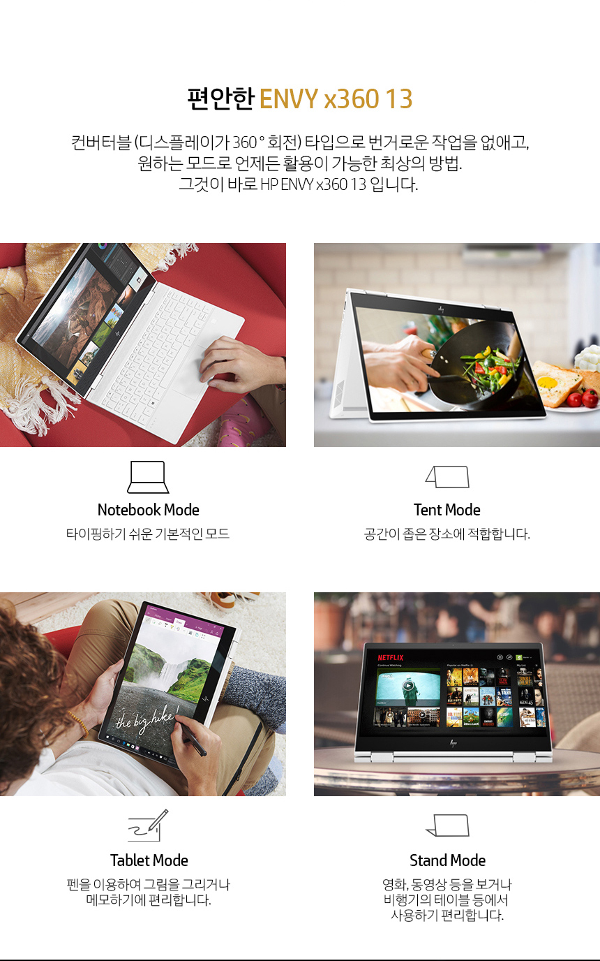 또한 ENVY 360은 강력한 컨버터블 기능으로 원하는 모드로 활용이 가능합니다.