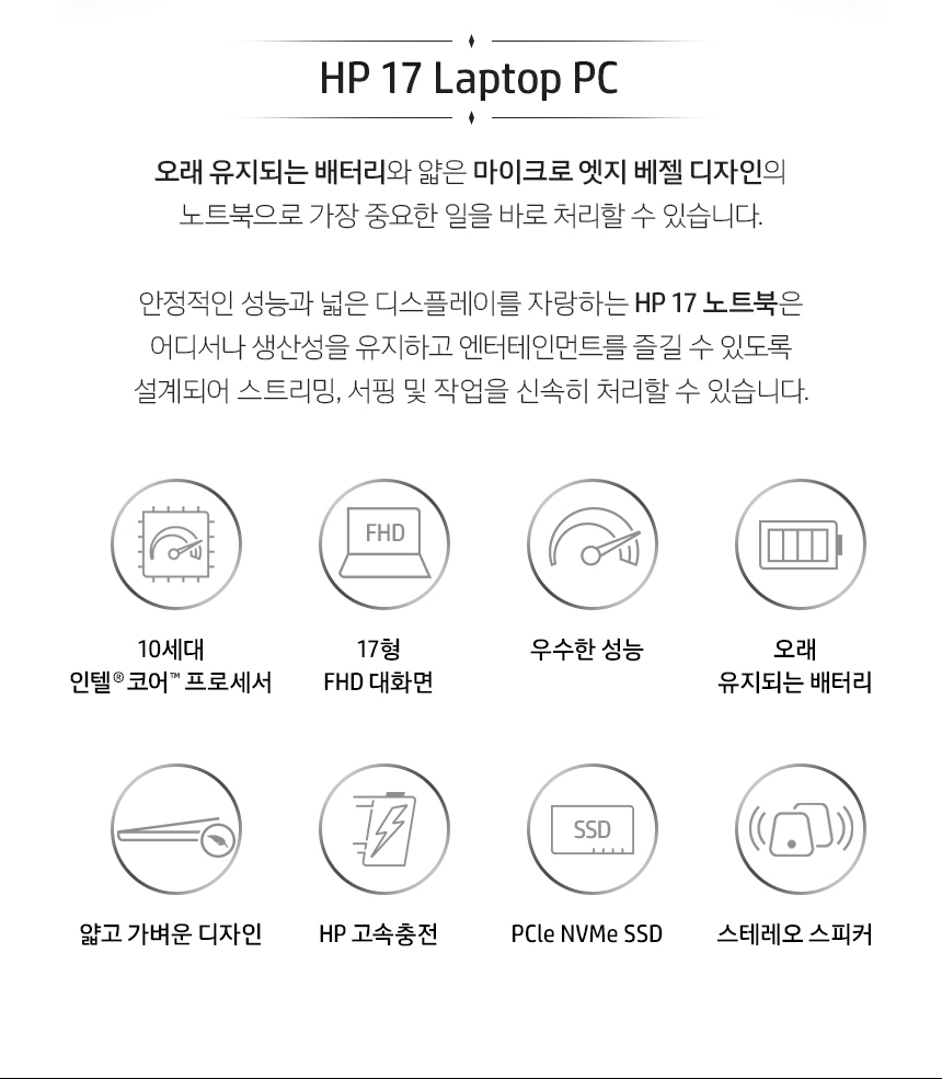 HP 17-by2002TU제품의 상세 설명을 끝으로 소개를 마치겠습니다