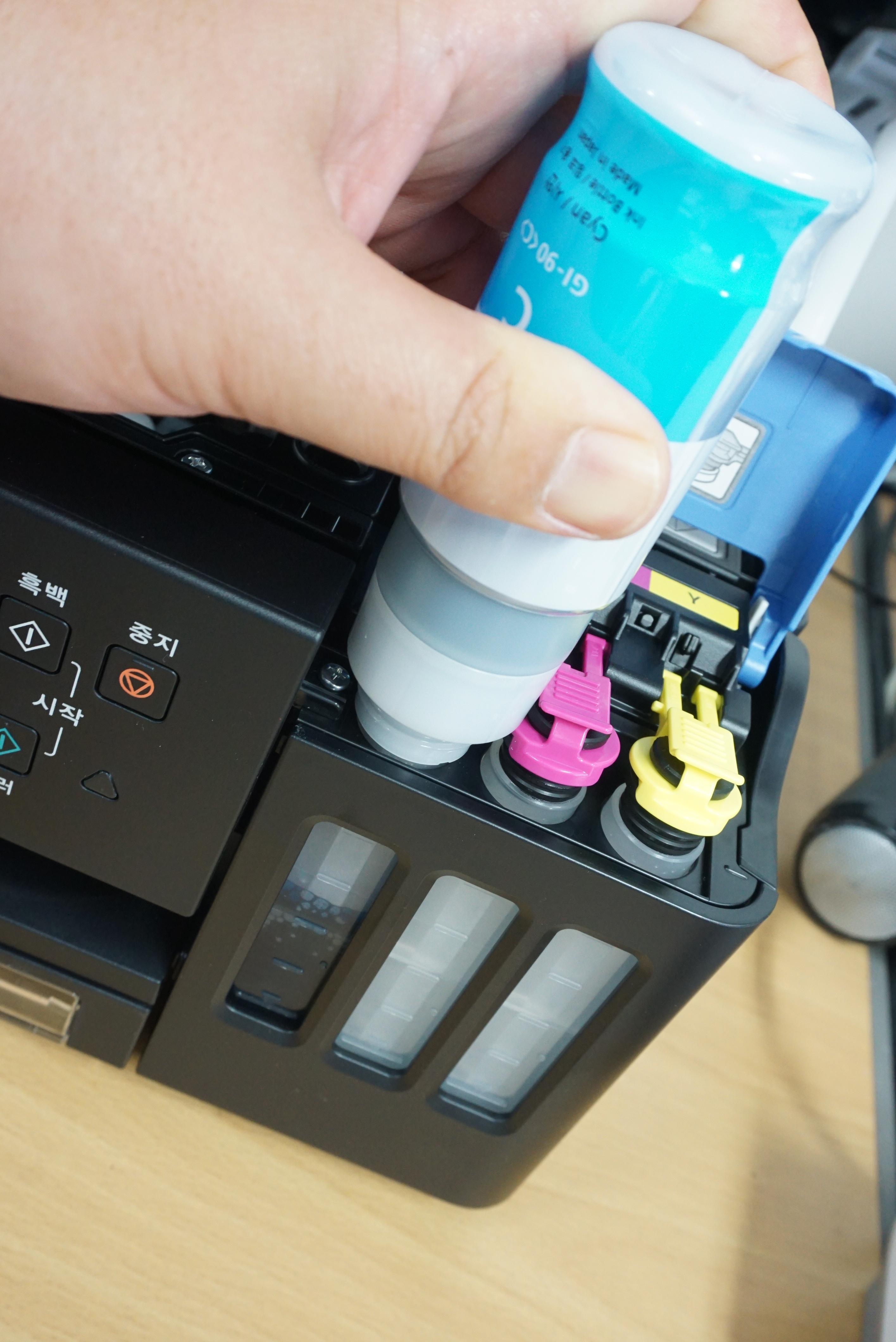 잉크통 노즐을 열고