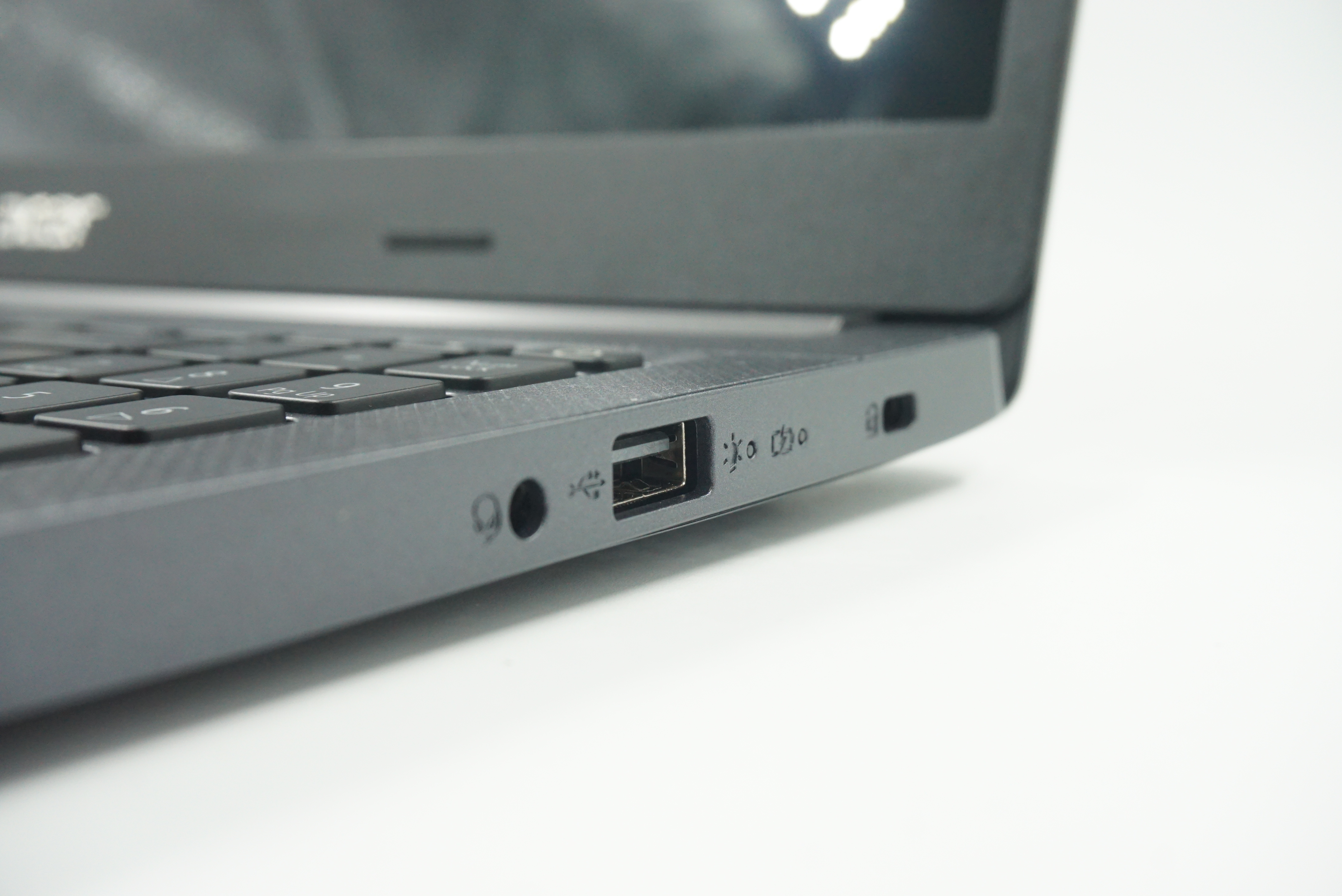 우측 면입니다. 헤드셋잭과 1개의 USB 2.0단자와 잠금장치를 위한 켄싱턴 락 포트가 있습니다.