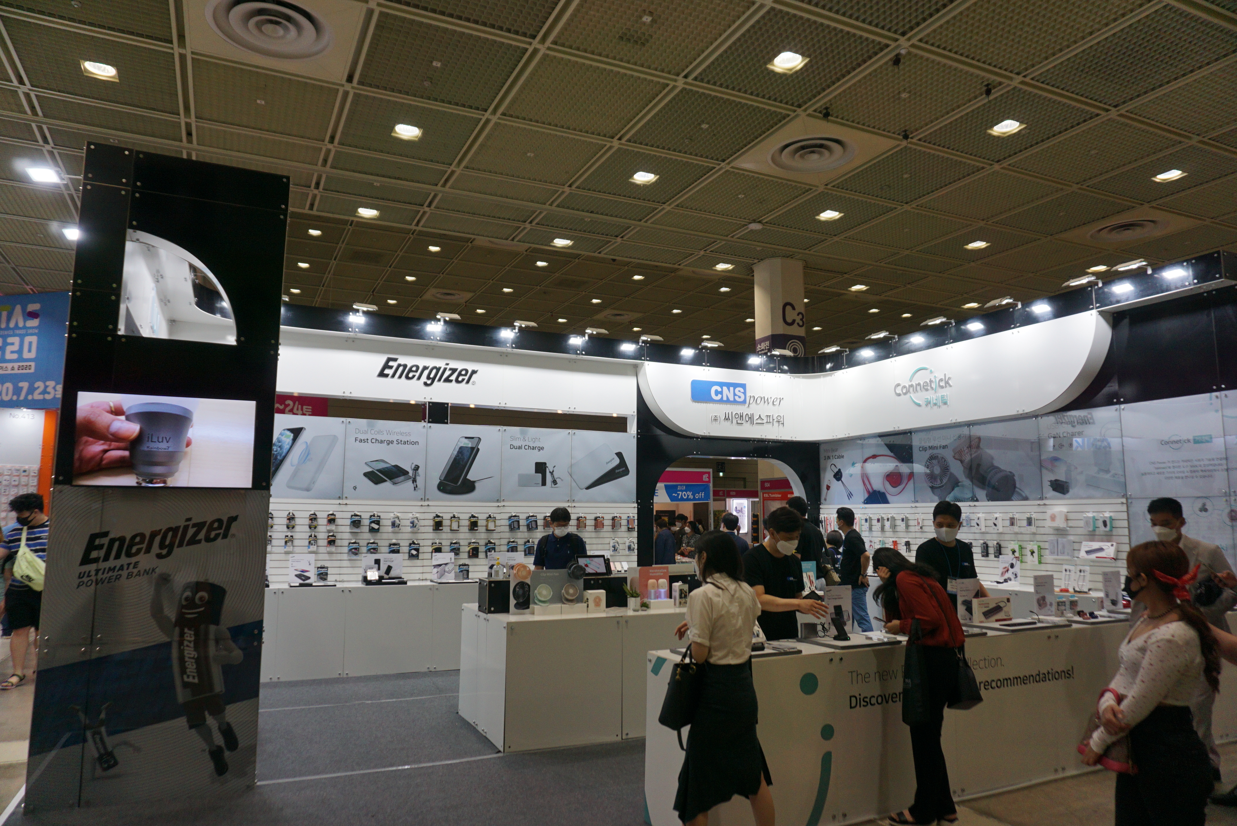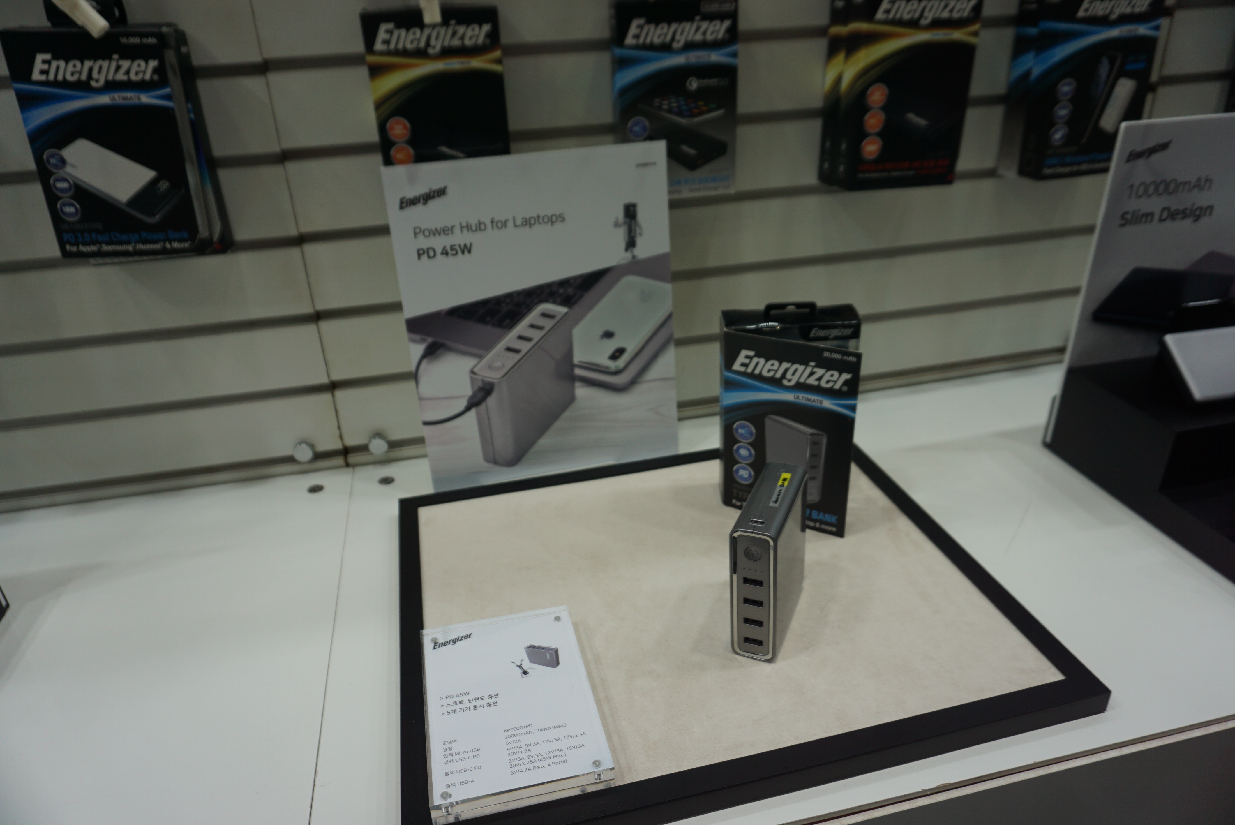 다양한 종류의 보조배터리가 전시되어있습니다.