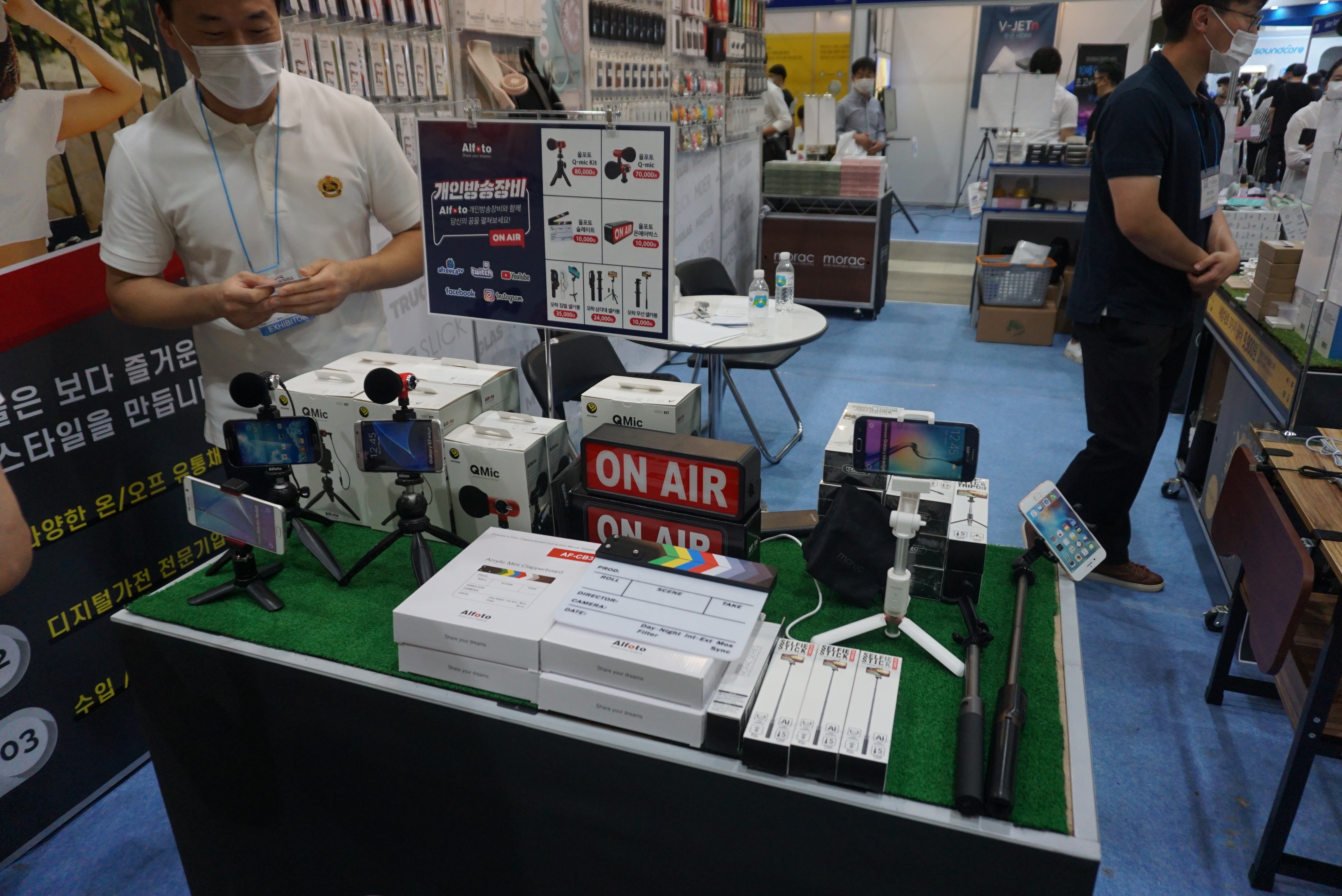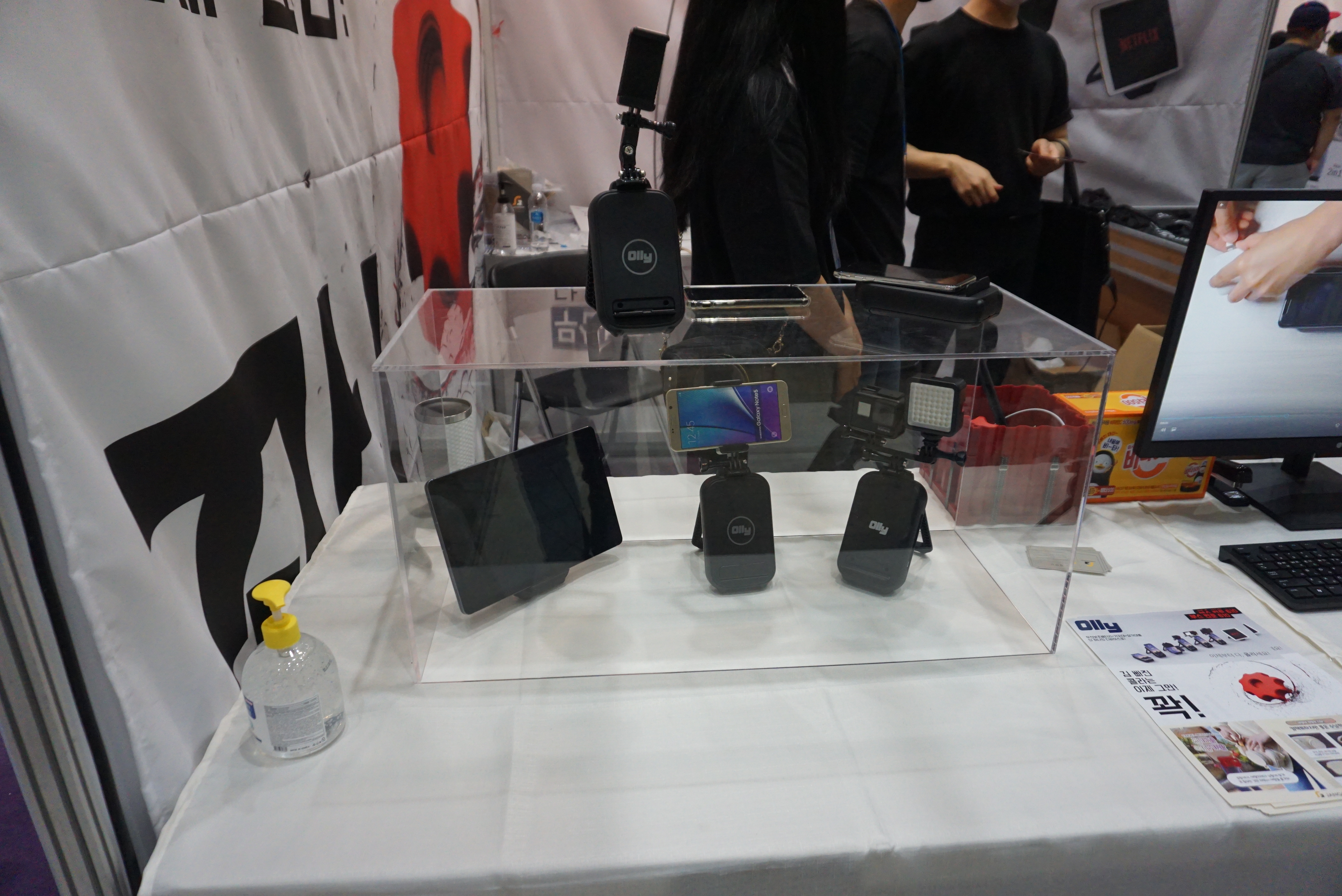 해브잇올이라는 부스에서는 짐벌 셀카봉과 슬레이트 , 방송중 표시등을 선보였습니다.