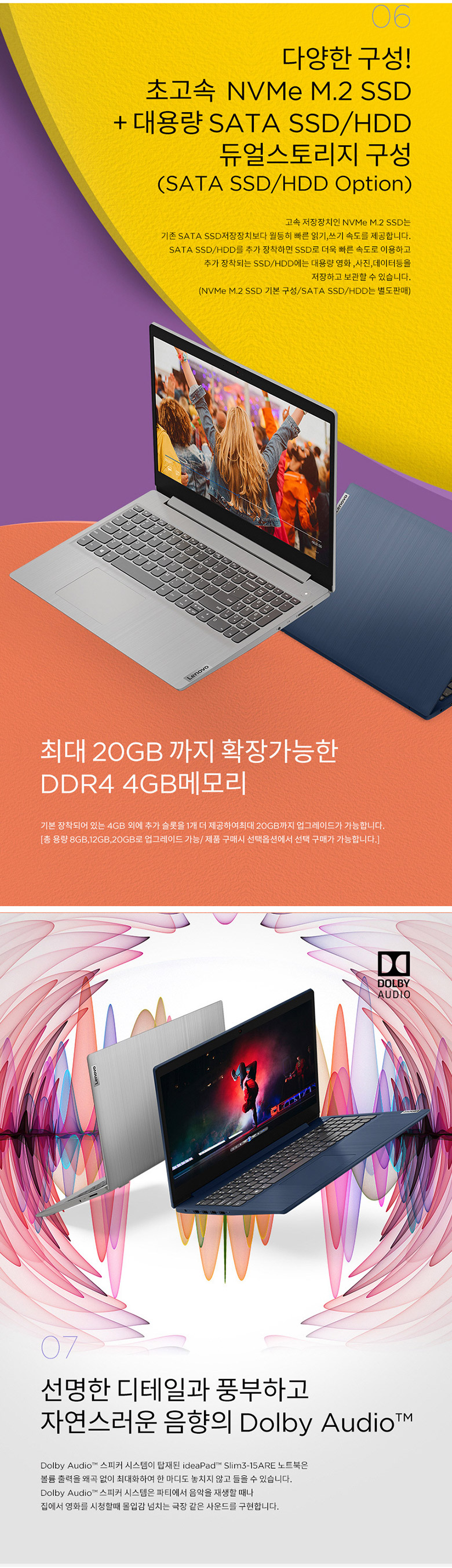 레노버 슬림3 15ARE은 추가로 장착이 가능하니 아주 좋은 선택일듯 합니다.