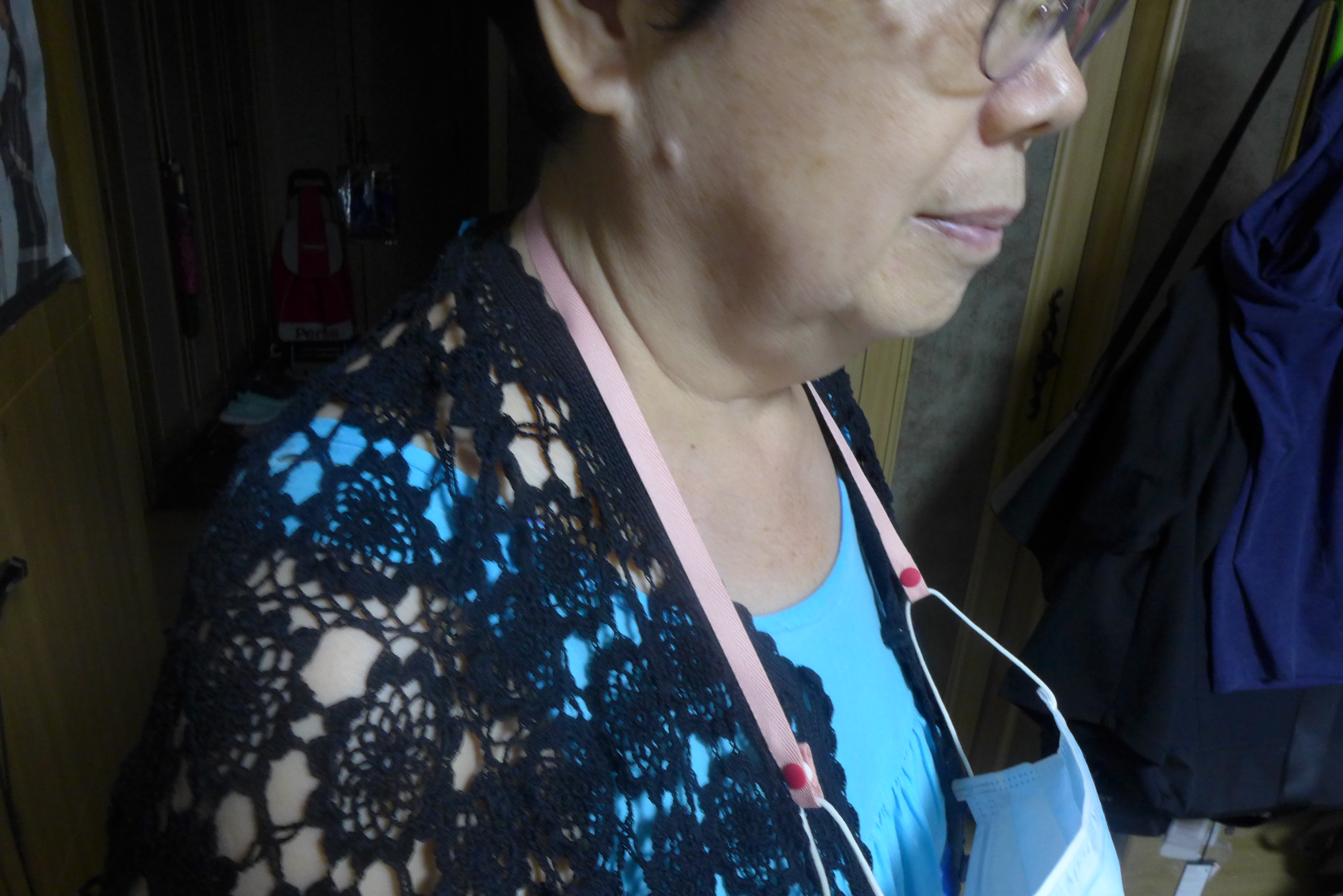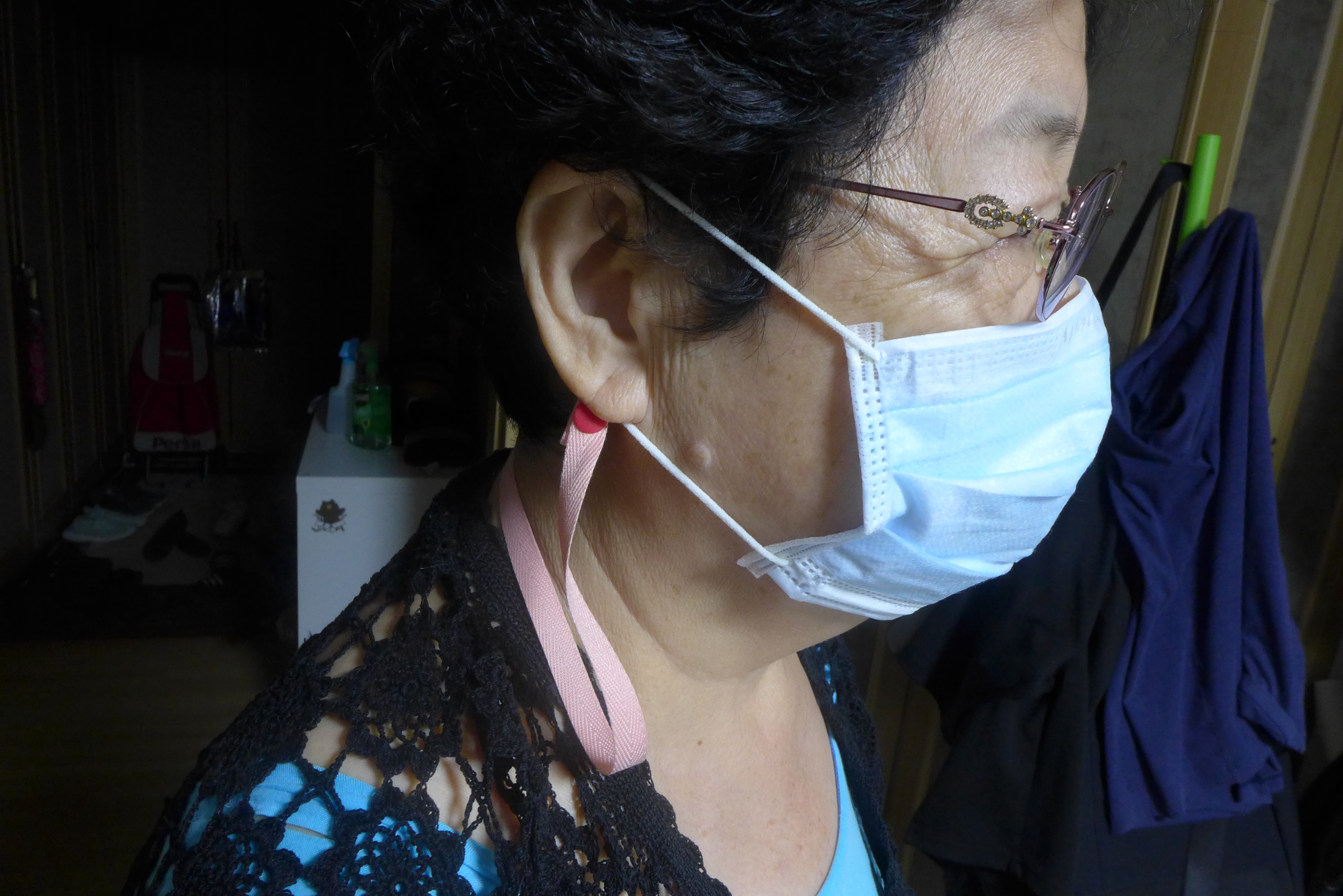 마스크를 잠깐 벗고 있을때는 편하게 목에 걸고 있으세요