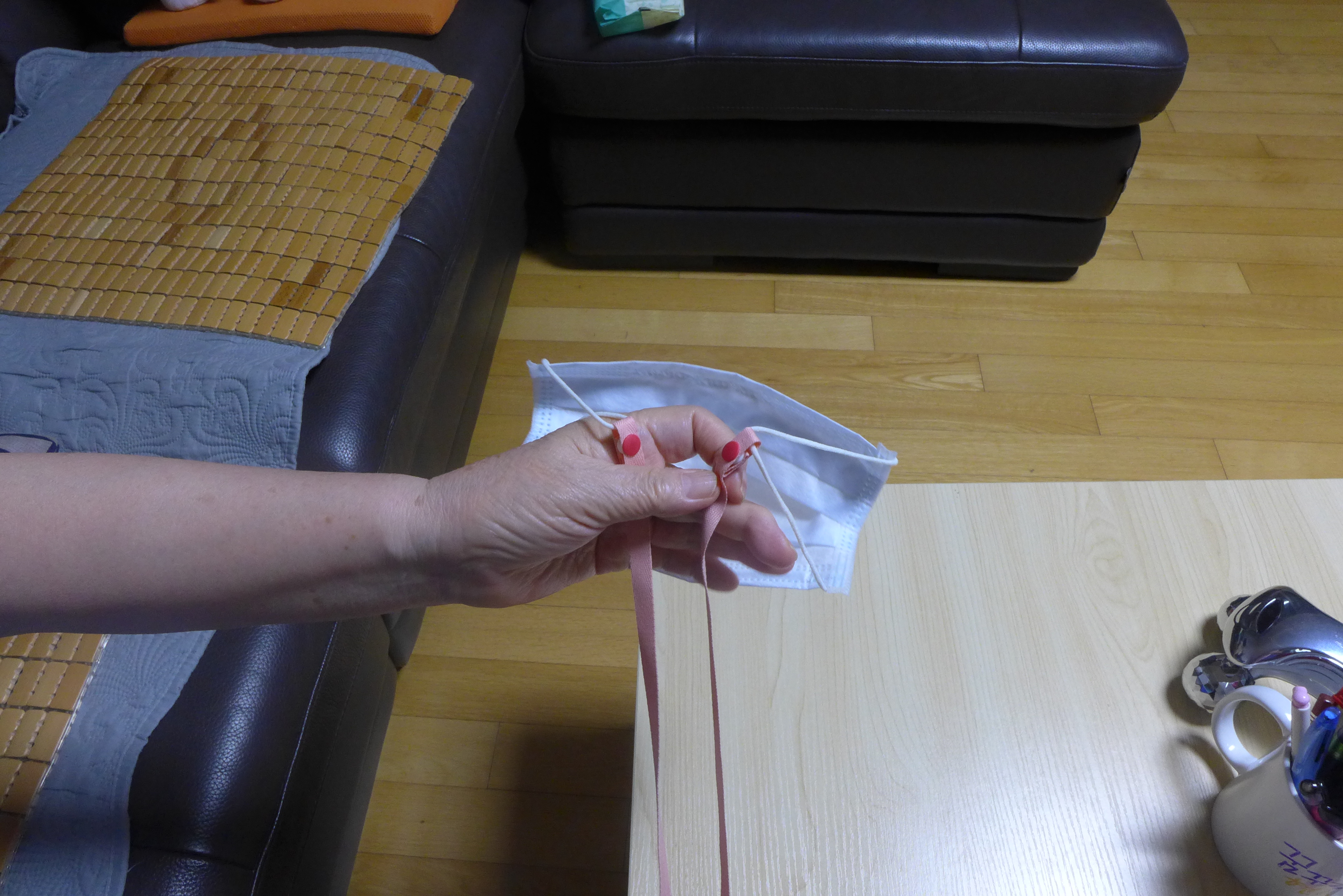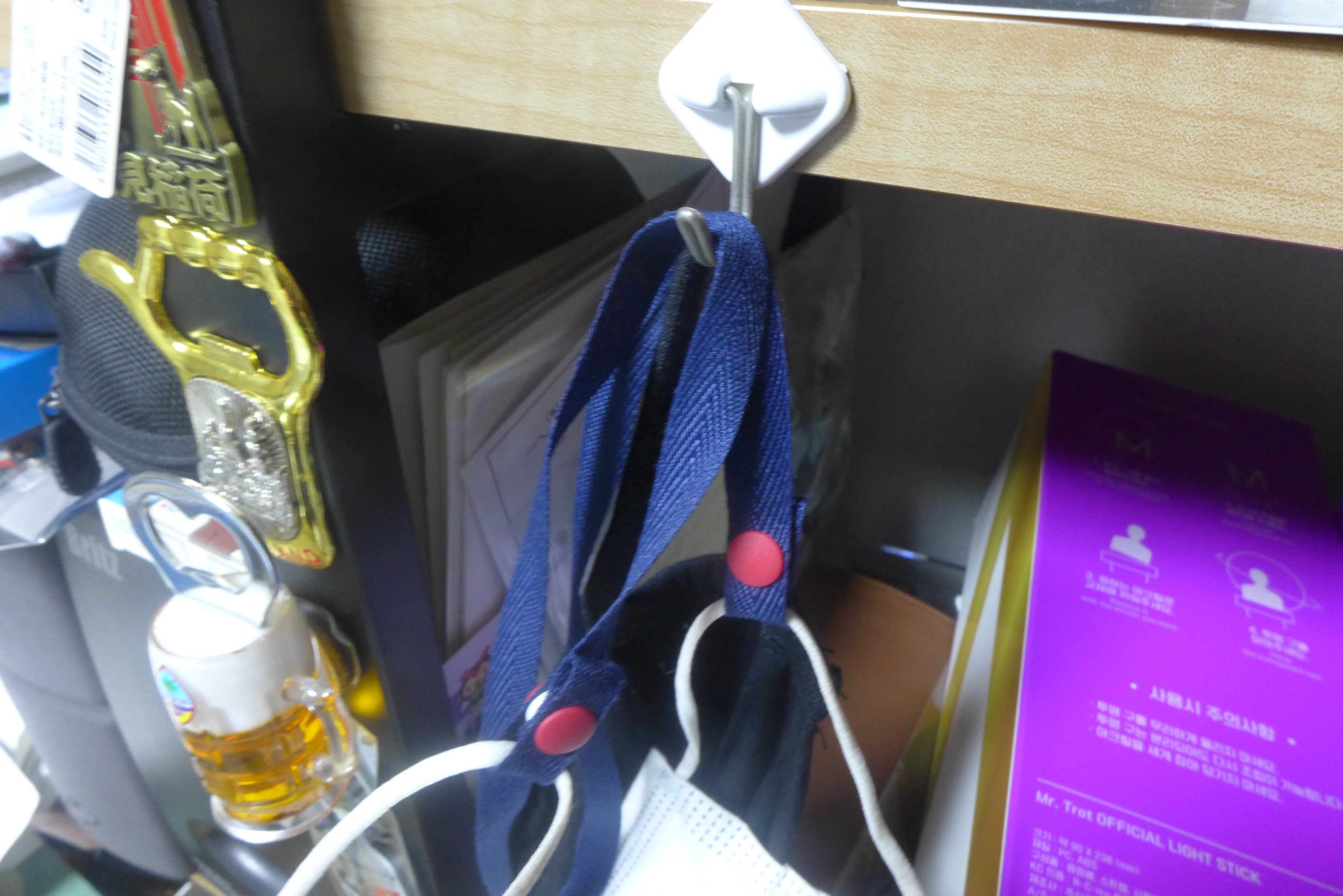 똑딱이를 이용해서 마스크 양쪽 끝에 끼워주면 딱 설치 끝.