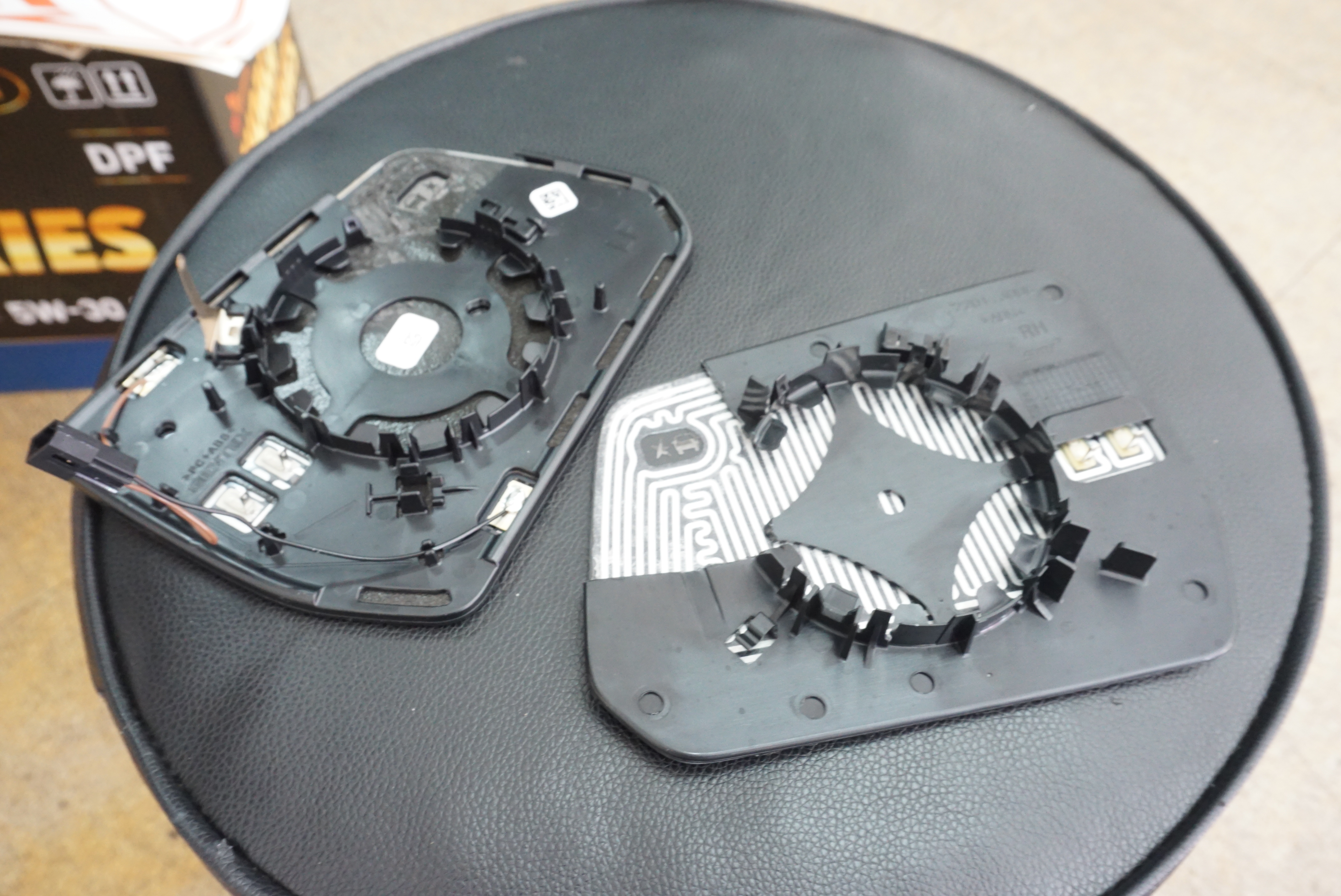 기존 순정미러에서 센서등을 떼어내서 옵틱글래스에 붙이는 작업을 한 상태 입니다.