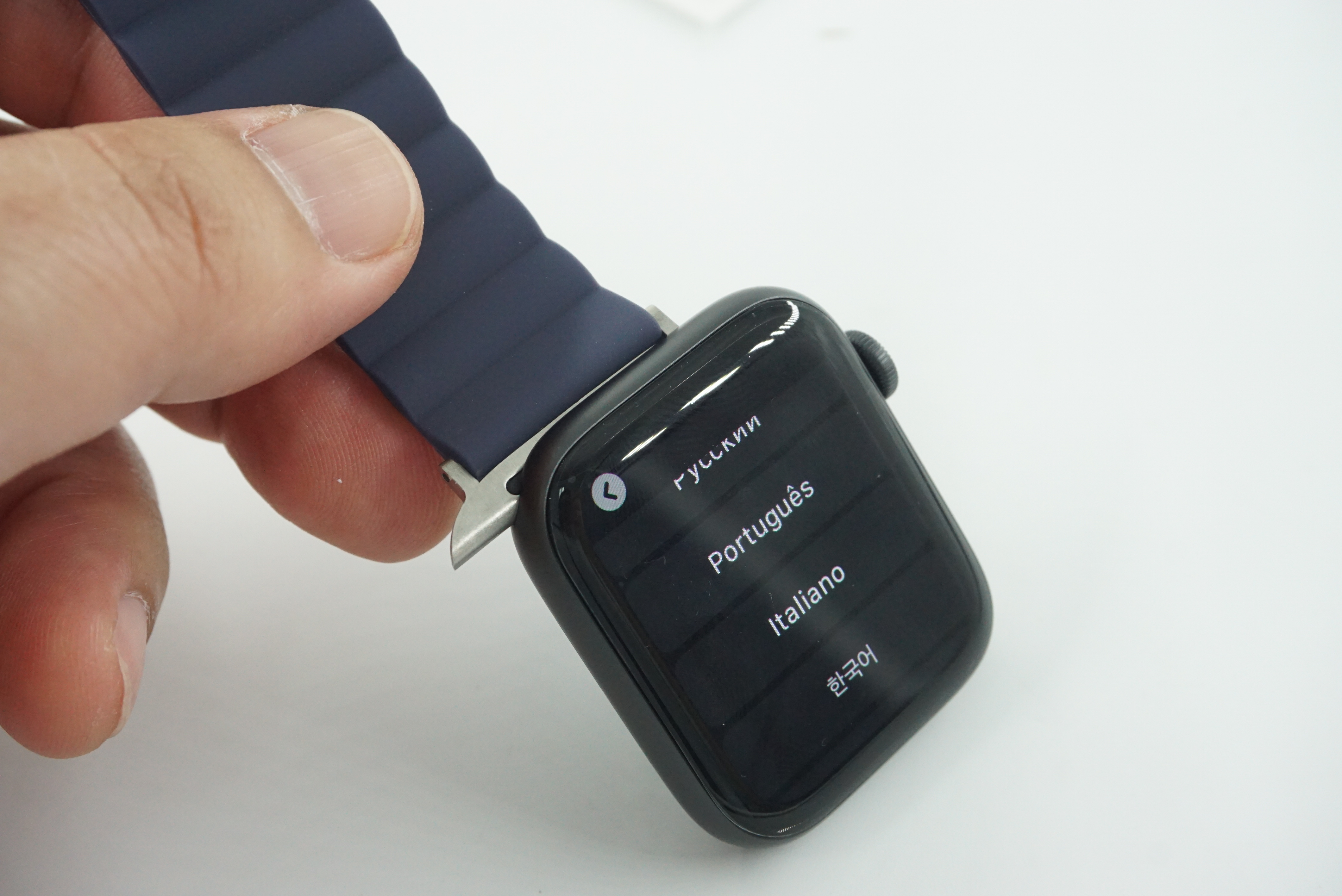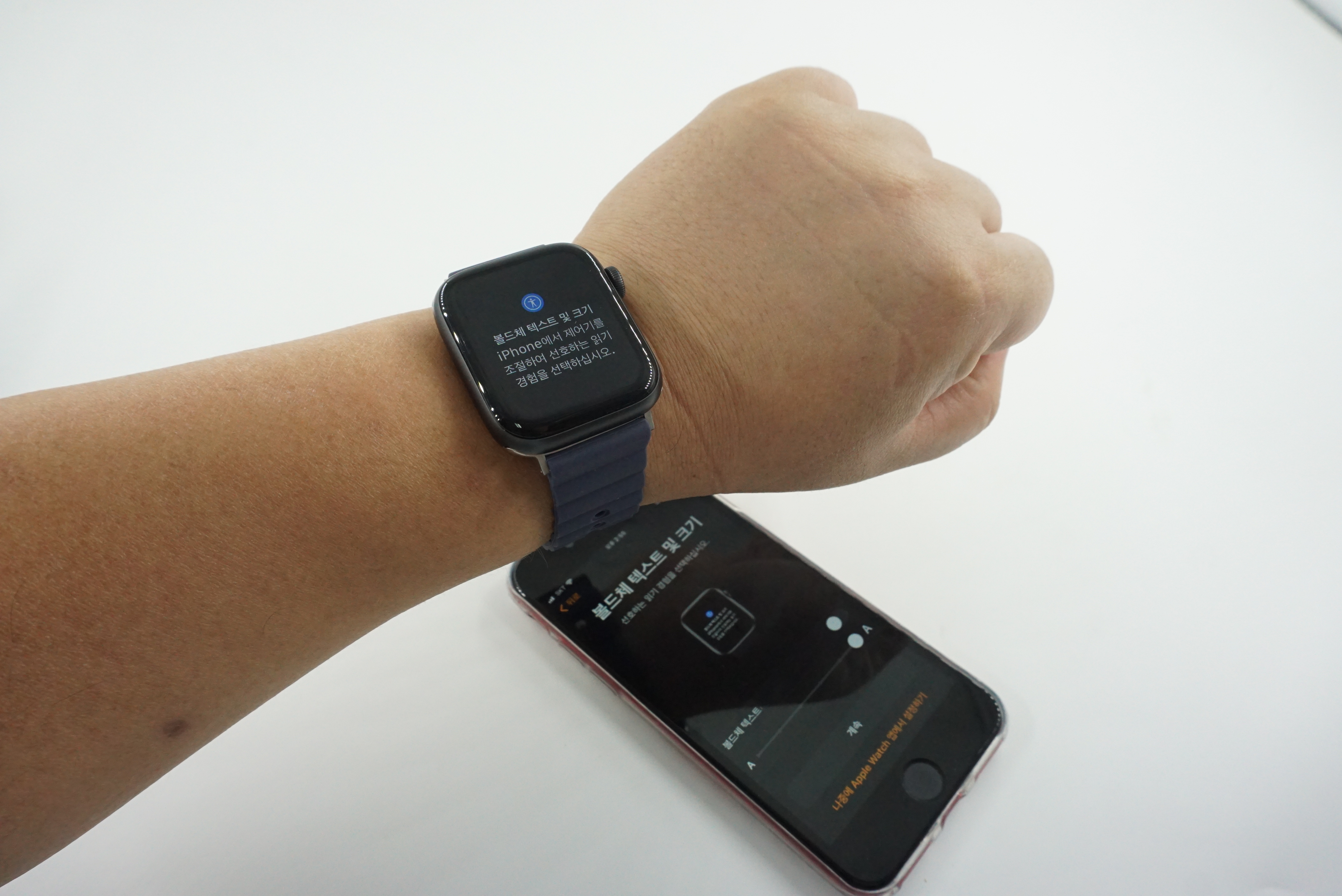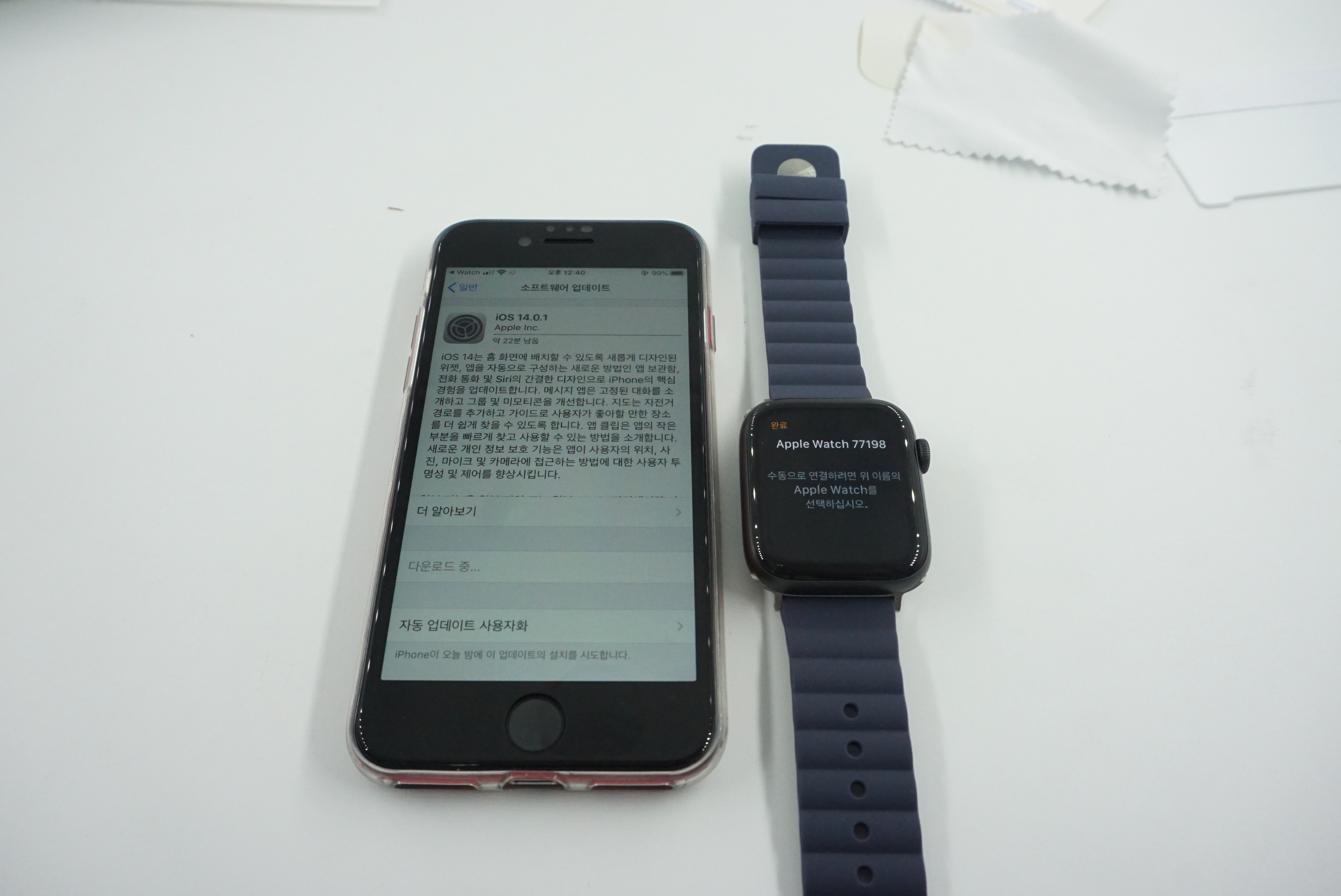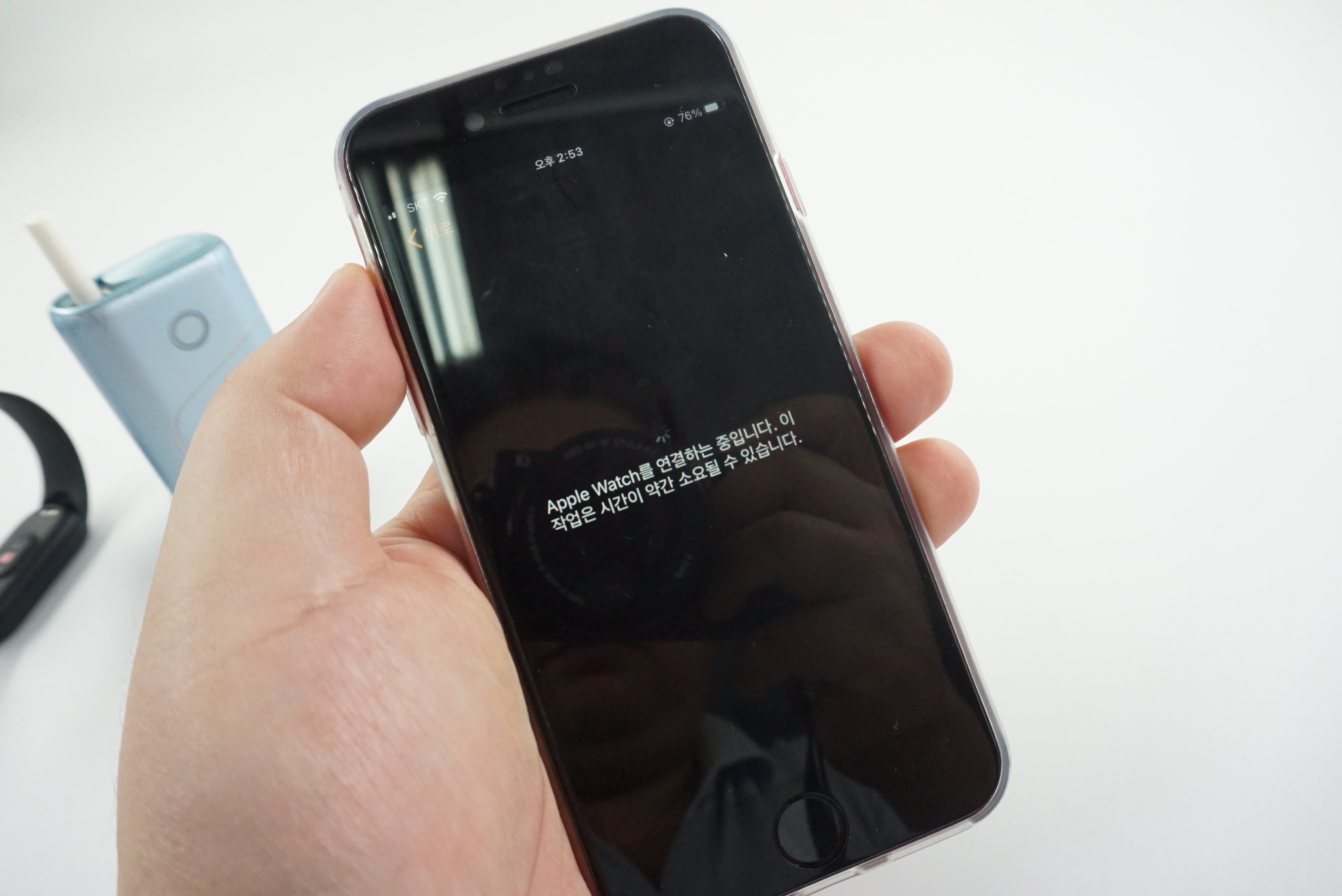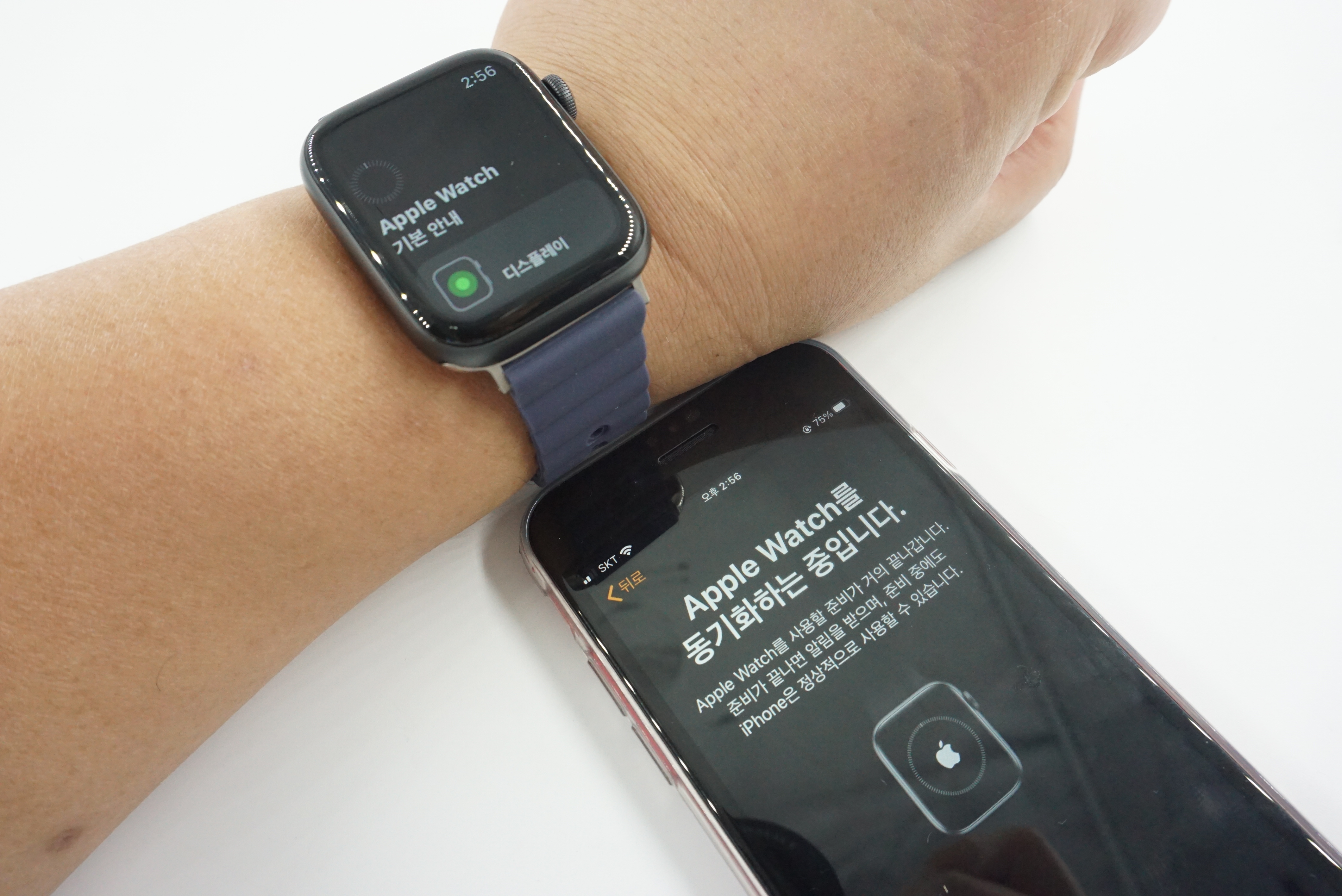 애플워치의 필름 부착과 스트랩 장착이 끝났습니다. 이제 동기화를..
