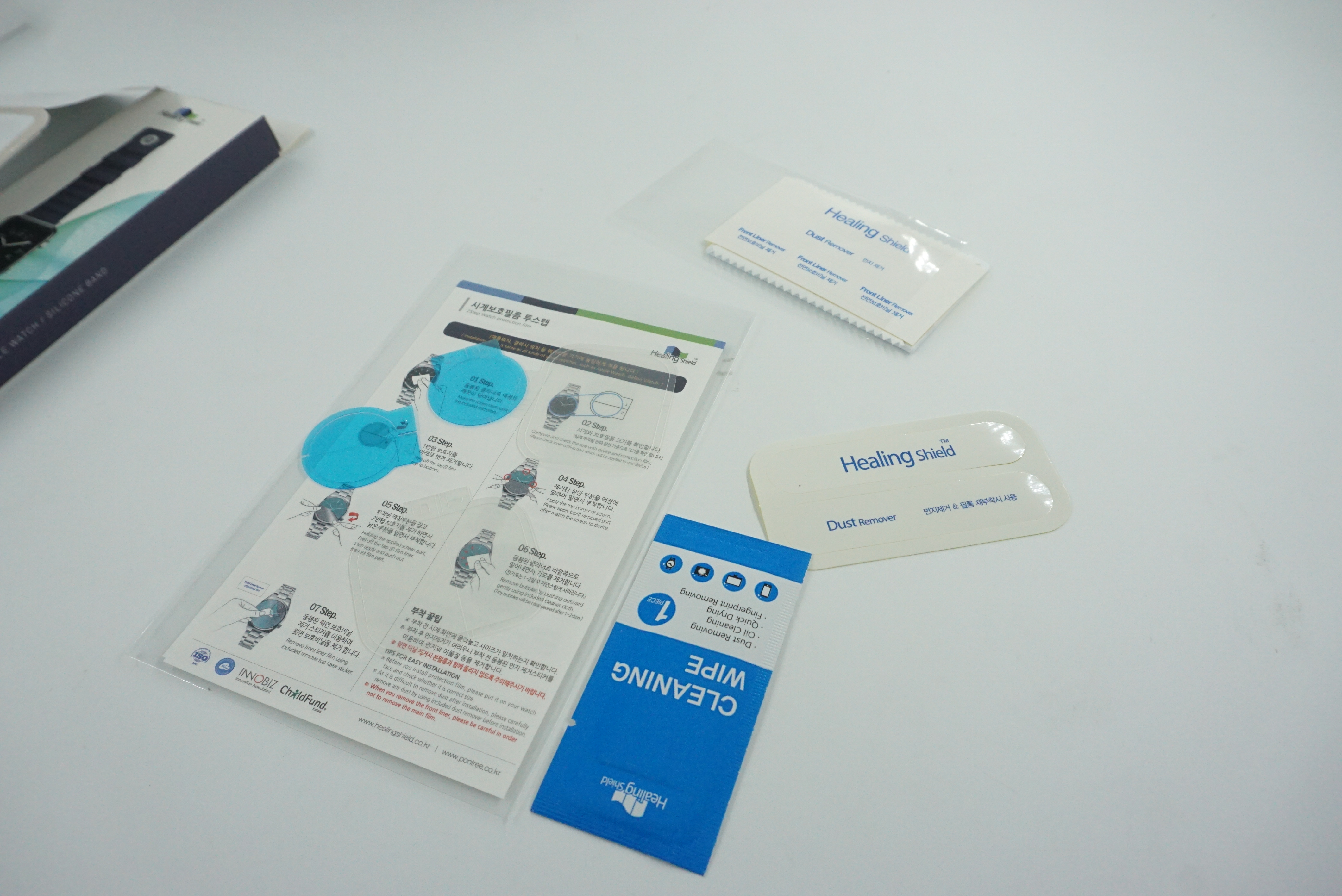 힐링쉴드 보호필름과 스트랩이 준비되었습니다.