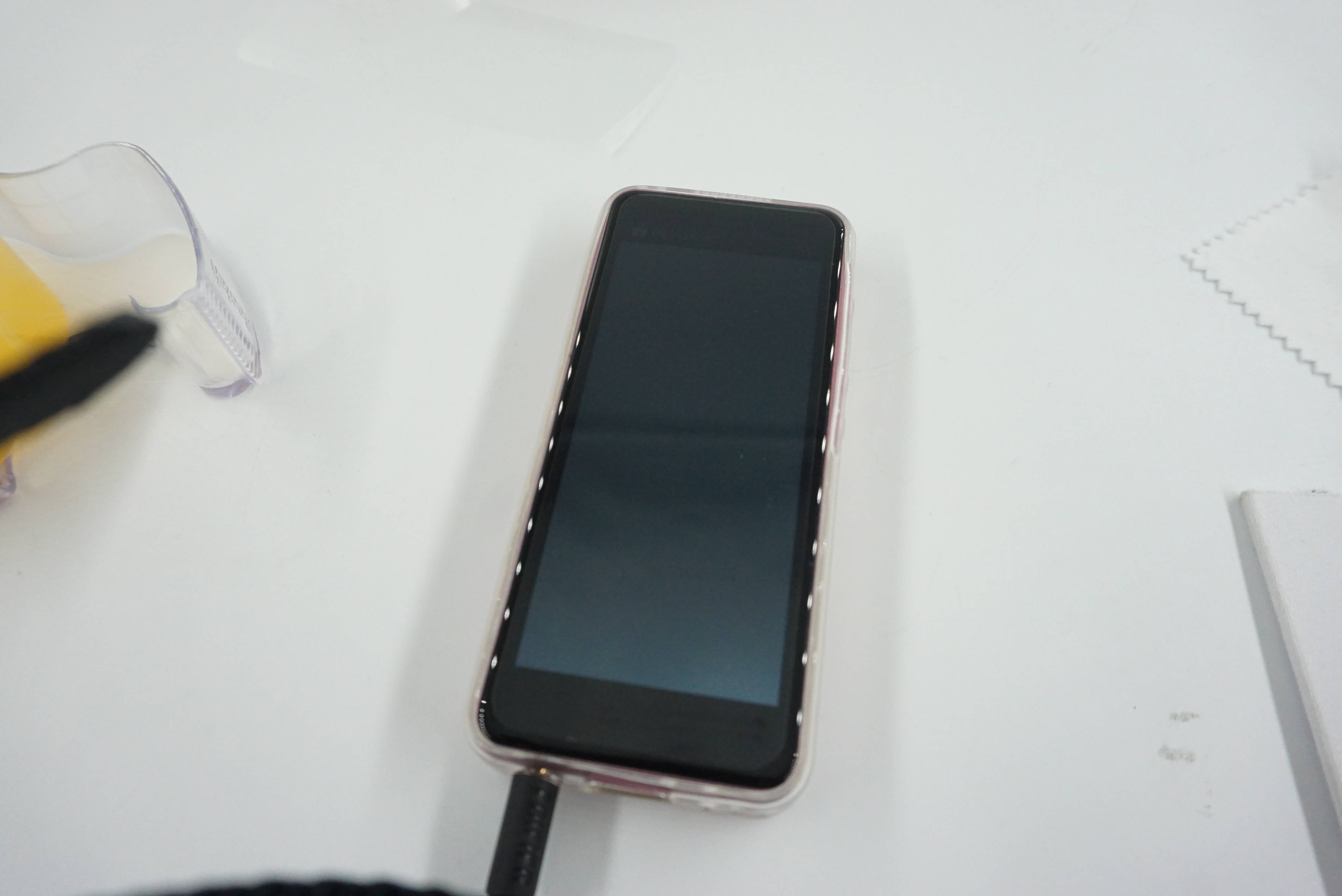 구성품. 케이스와 보호필름, 이어폰과 C타입 케이블. 그리고 슬롯 침