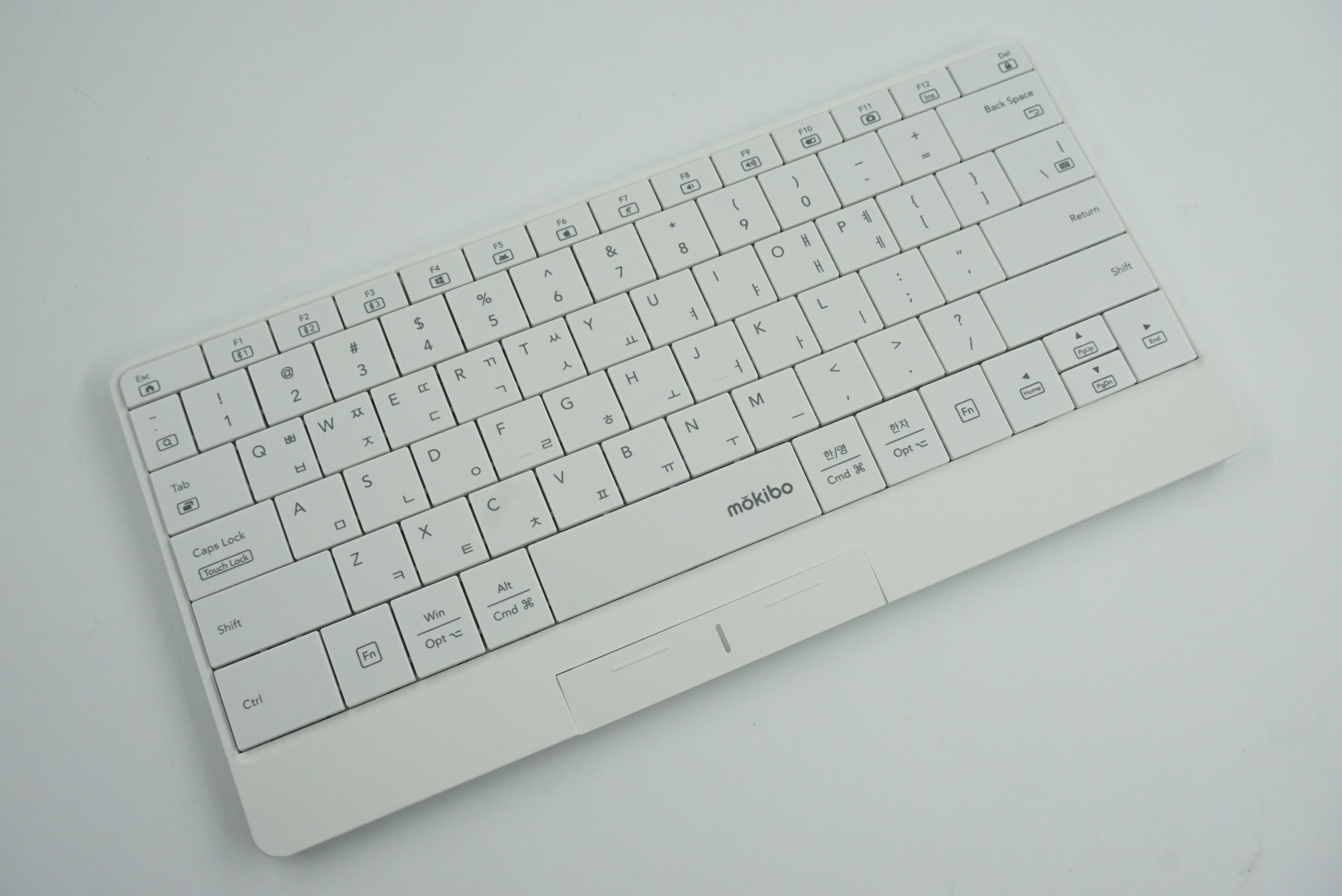 그냥 블루투스 키보드처럼 보이지만 키보드의 상판 전체가 터치패드 역할을 하는 신기한 제품입니다.