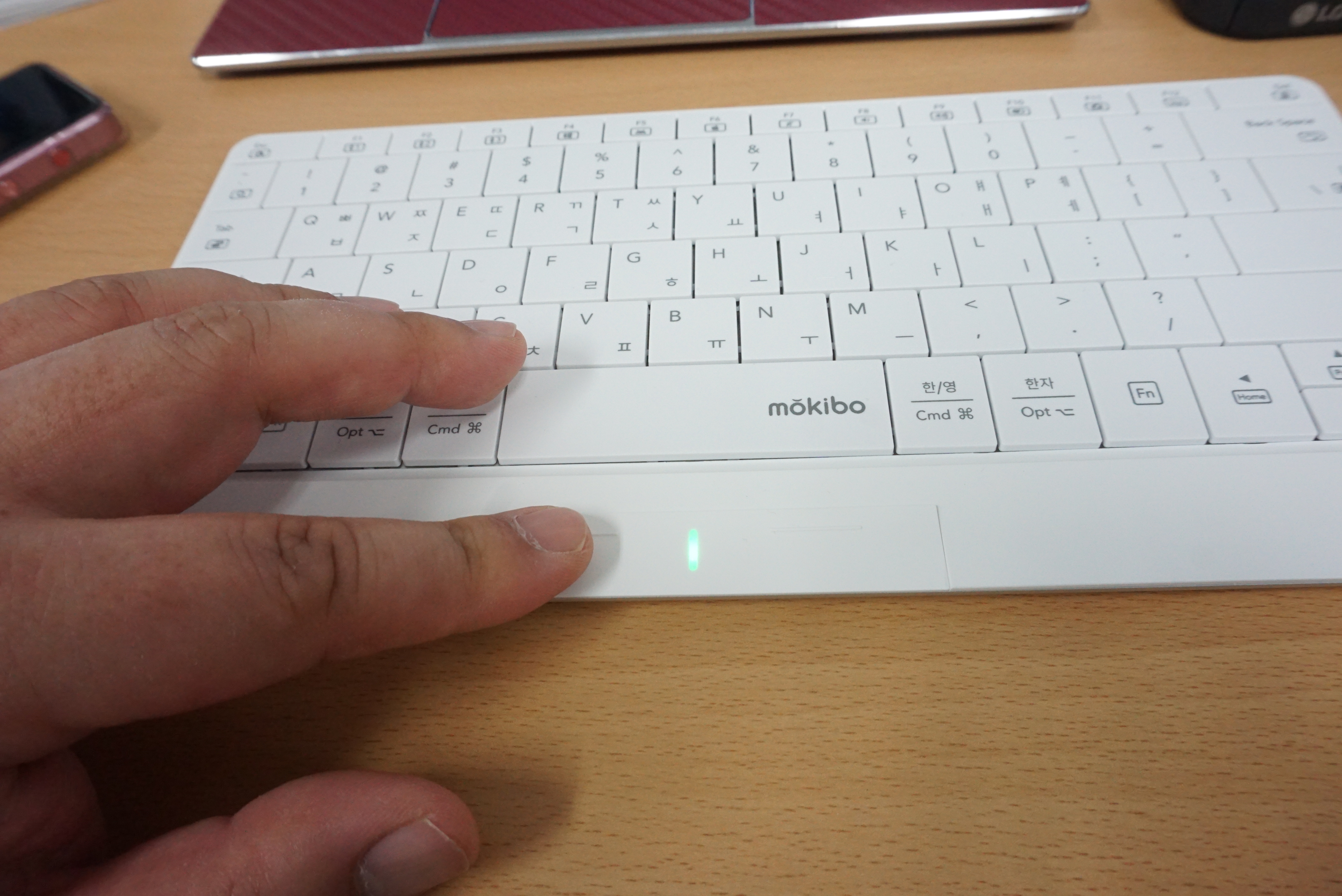 손가락을 살짝 올리면 불이 들어오며 터치패드 모드로 작동합니다.