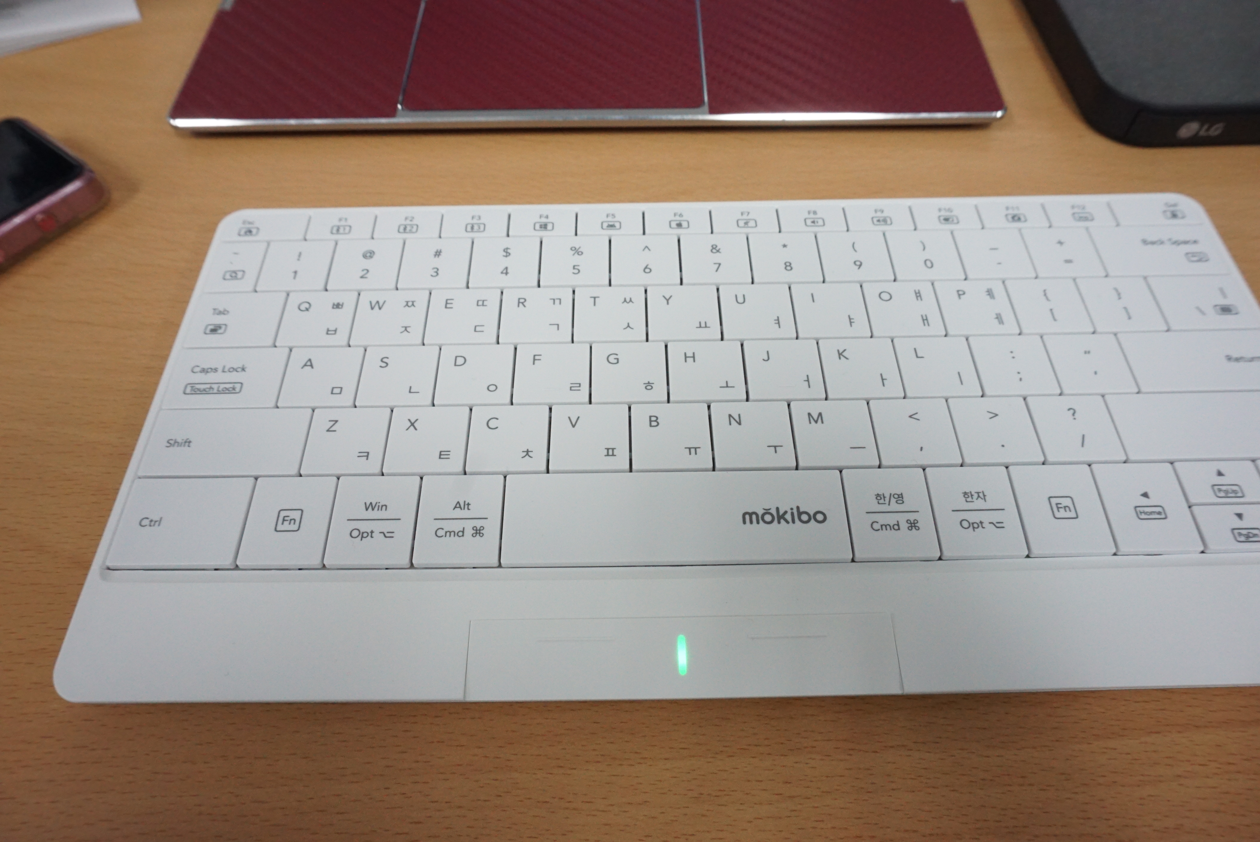 불이 들어오면 터치패드 모드, 불이 꺼지면 키보드 모드입니다.