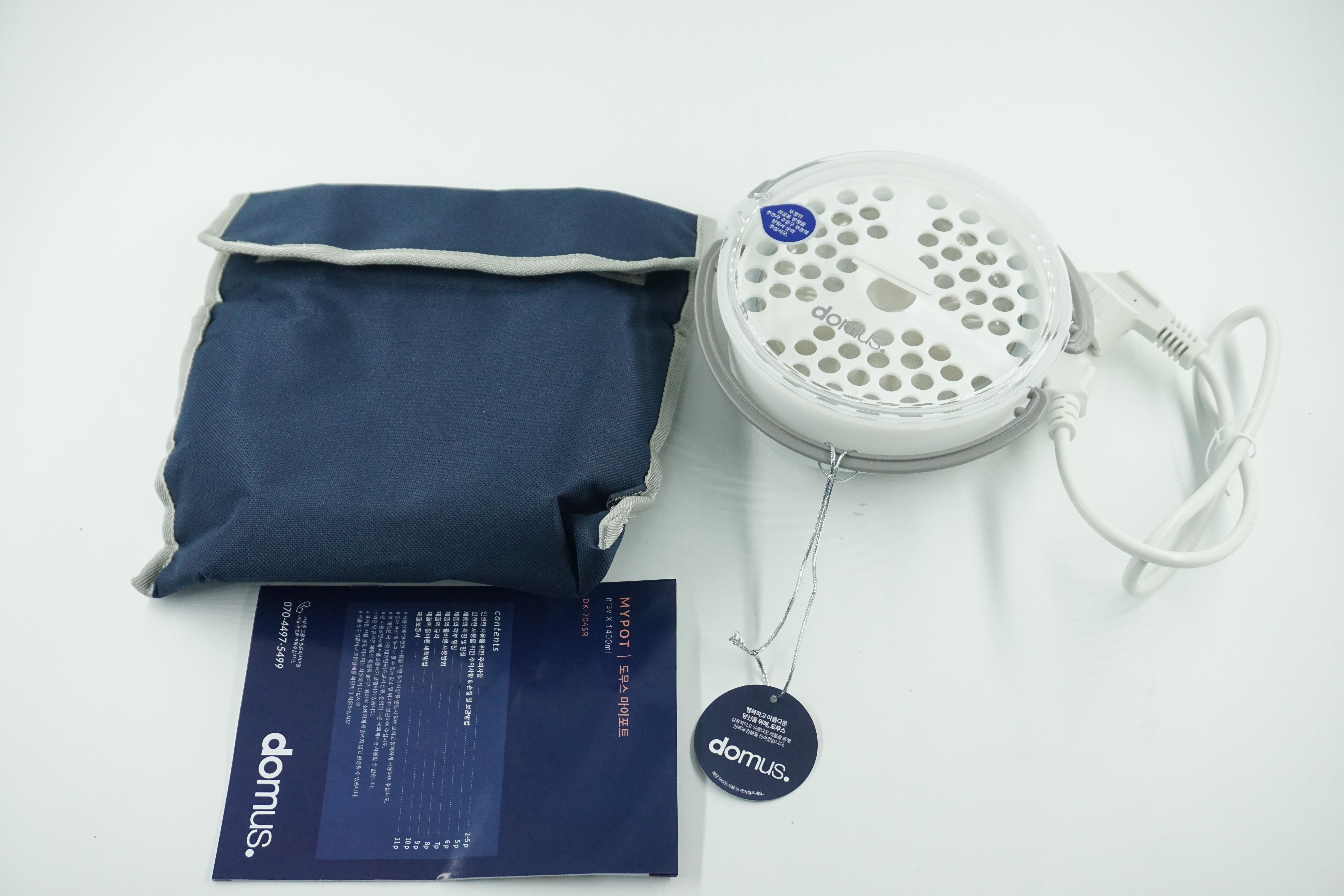구성품은 본체와 220v 케이블 그리고 휴대용 파우치와 찜기