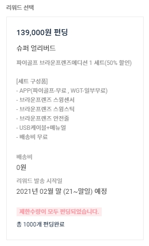 와디즈 "라인프렌즈 파이골프" 급 추가 펀딩! 기존고객기만?