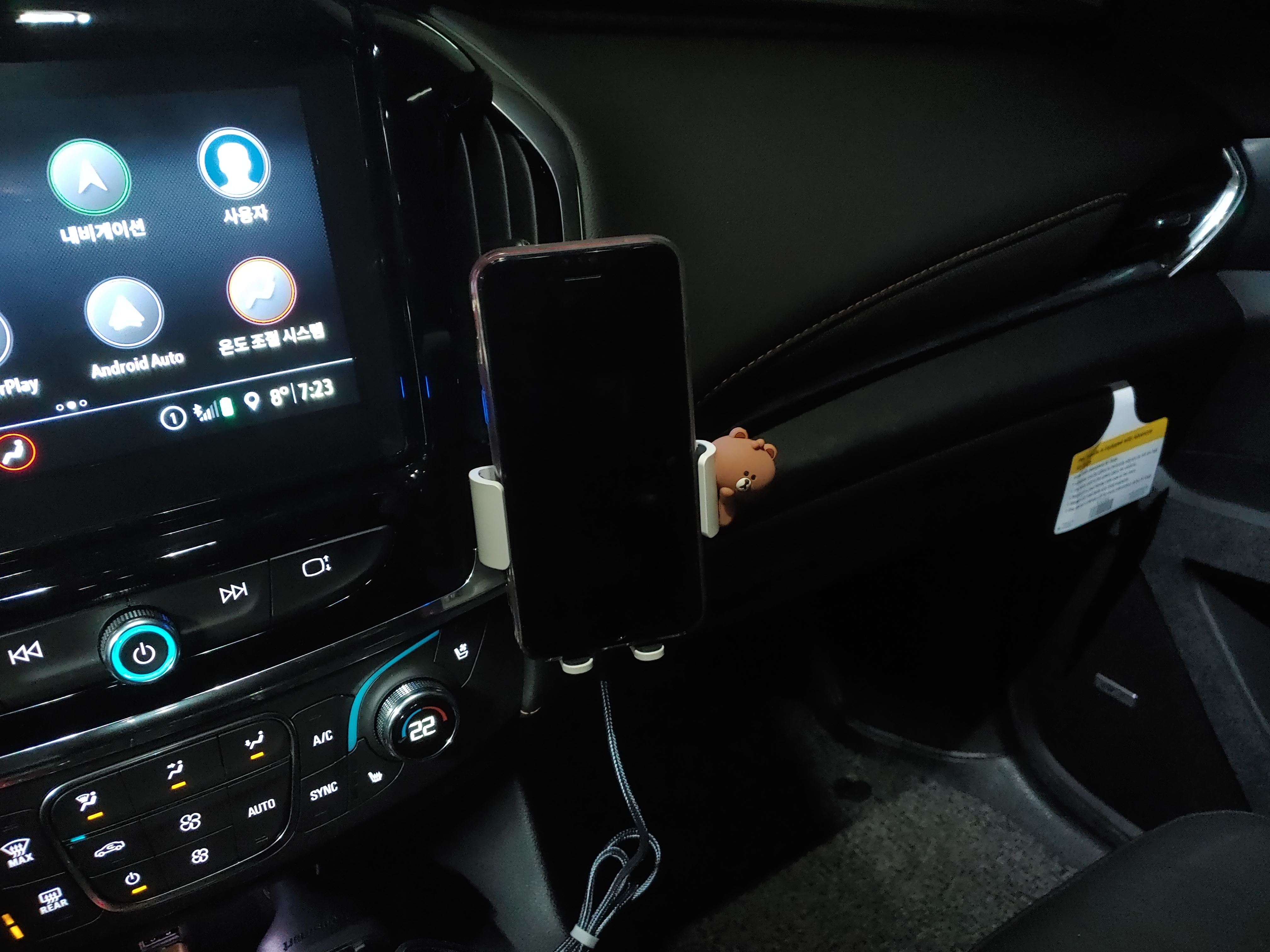차량에 부착해봅니다. 트래버스 차량의 송풍구가 세로형이라 조금 불안했는데 잘 고정됩니다.